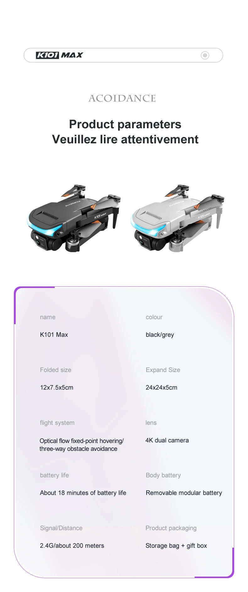 Drone K101 Max Mini Drones With Dual 4K HD Camera Optical Flow 3-sided Obstacle Avoidance Localization RC Quadcopter Toys Gifts