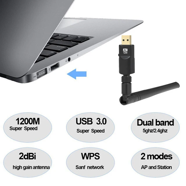 Wireless WIFI Adapter 1200M USB3.0 2.4G+5GHz Dual Band 802.11acbgn adapter Gigabit WiFi Speed Card for Laptop Desktop Computer