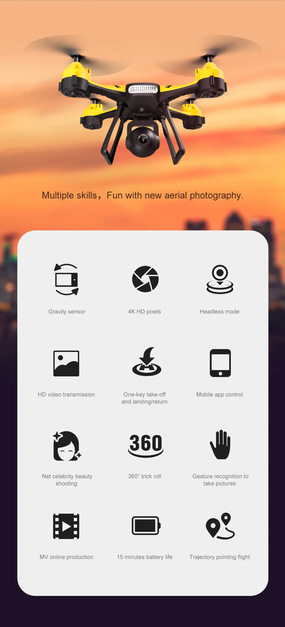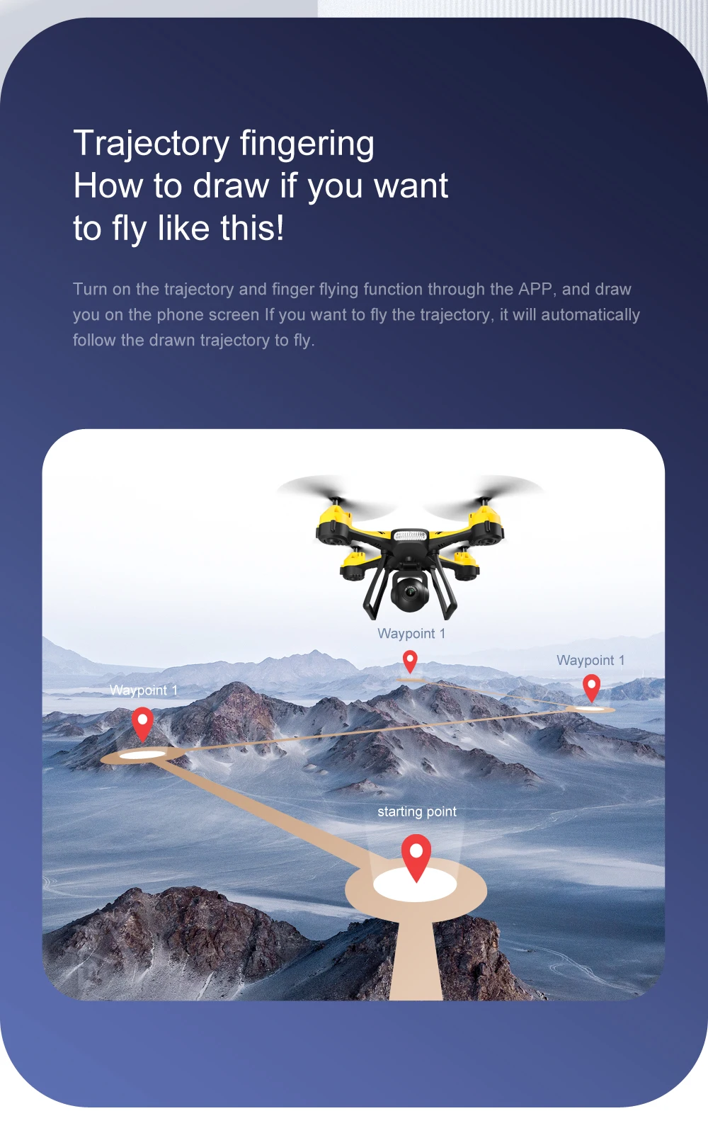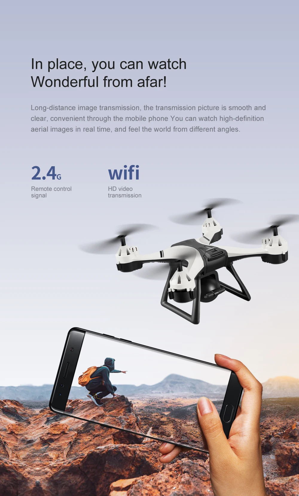 -With FPV transmission, you can see the amazing view from a live video feed through a smartphone app. And these is many special app functions.