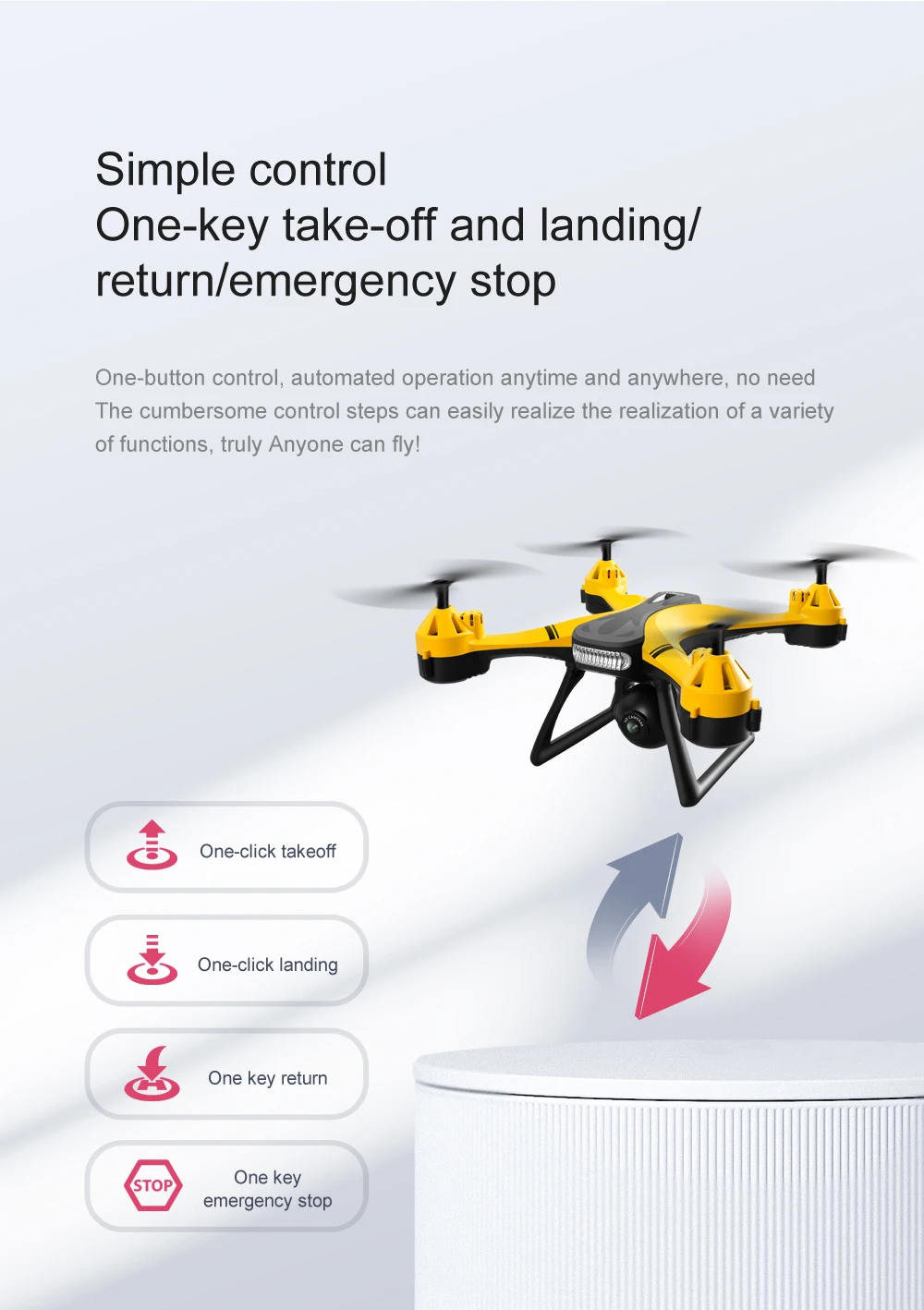 -Designed for Kids and Beginners, just press one button to take it off or land it easily.