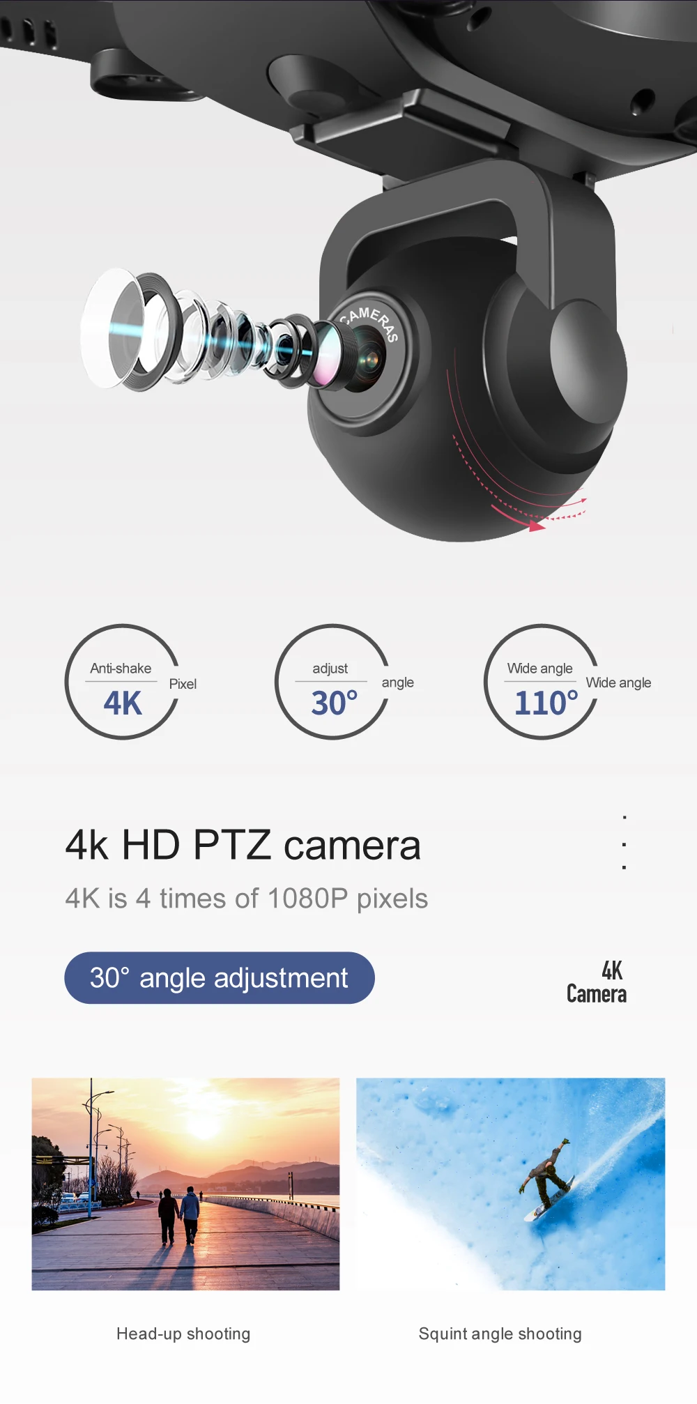 Camera Resolution:None/480P/4K optional