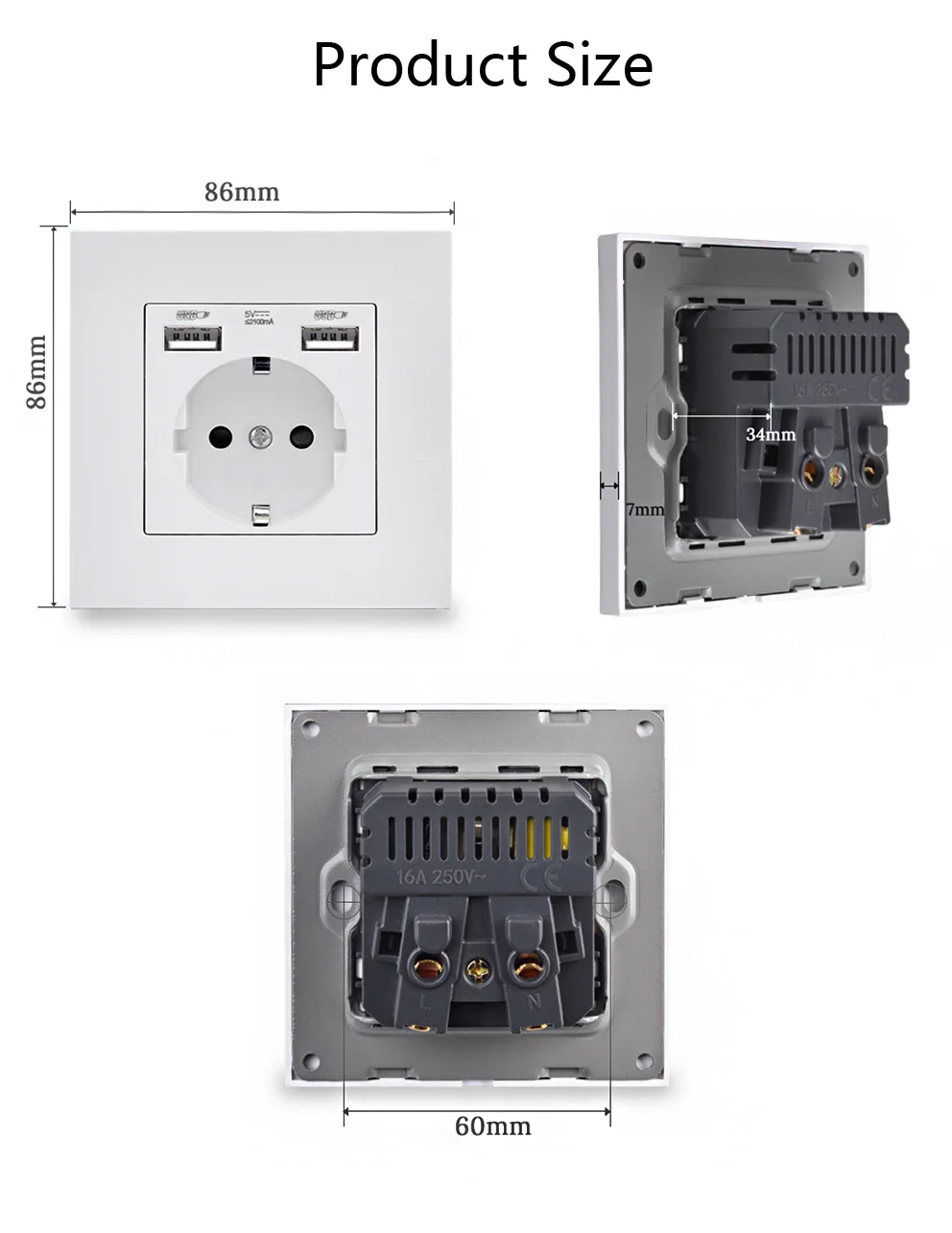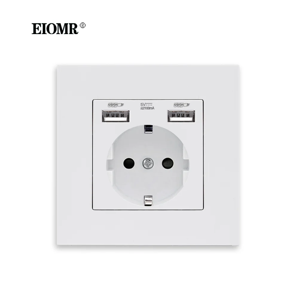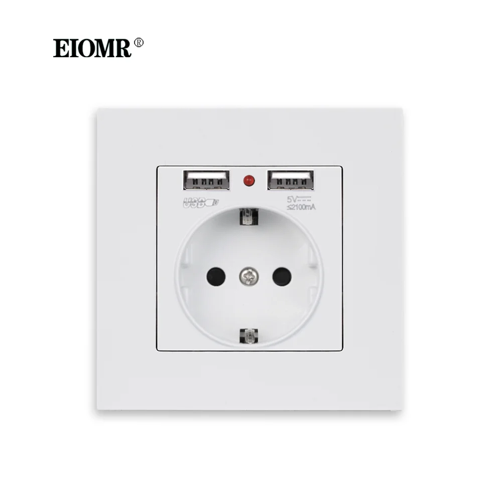 EIOMR EU with USB Port Electrical Socket 16A AC 110~220V Standard Outlet 86mm*86mm Flame Retardant PC Panel Wall Plug Pop Socket