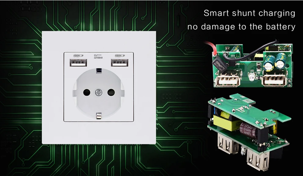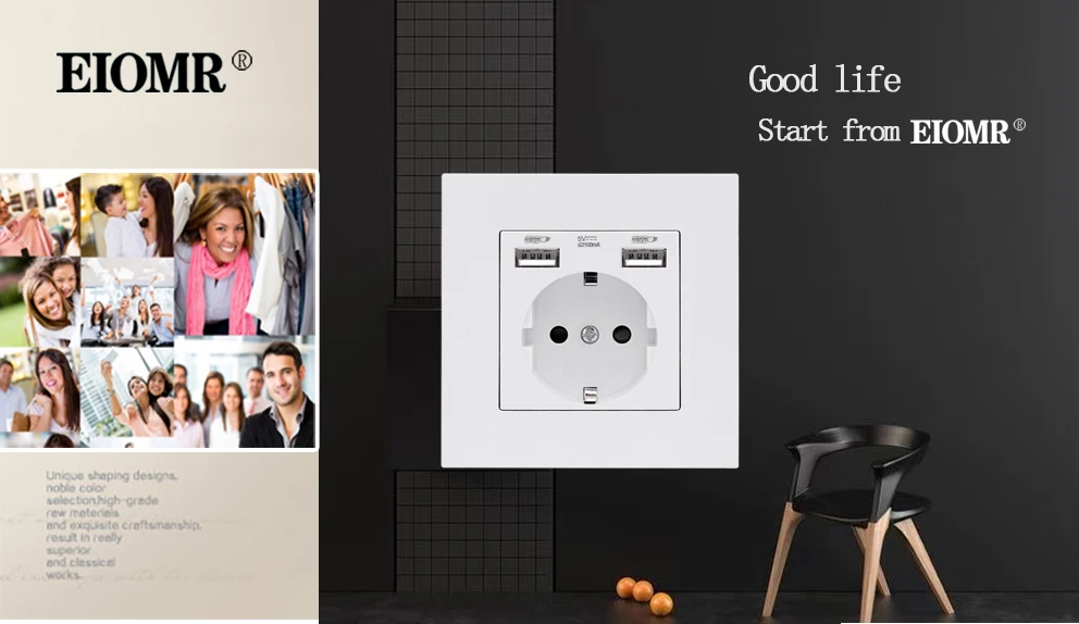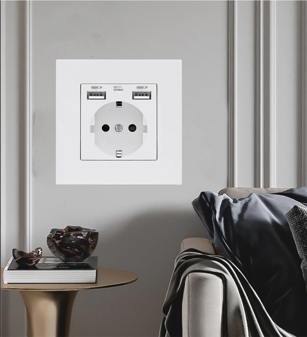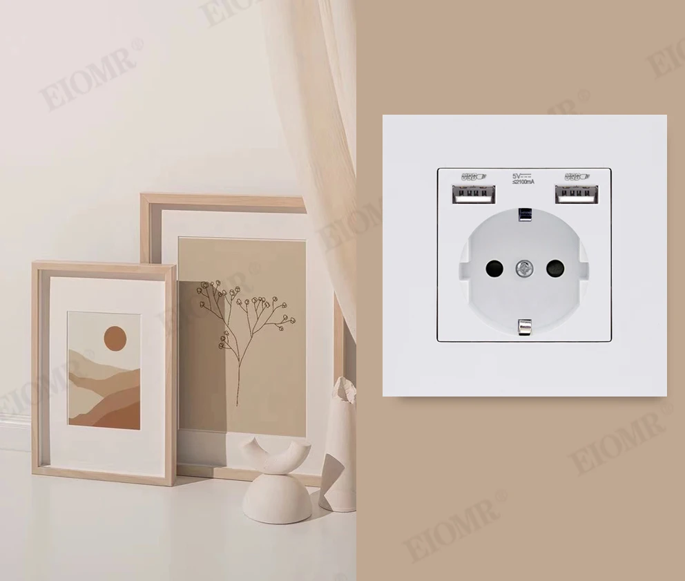 EIOMR EU with USB Port Electrical Socket 16A AC 110~220V Standard Outlet 86mm*86mm Flame Retardant PC Panel Wall Plug Pop Socket
