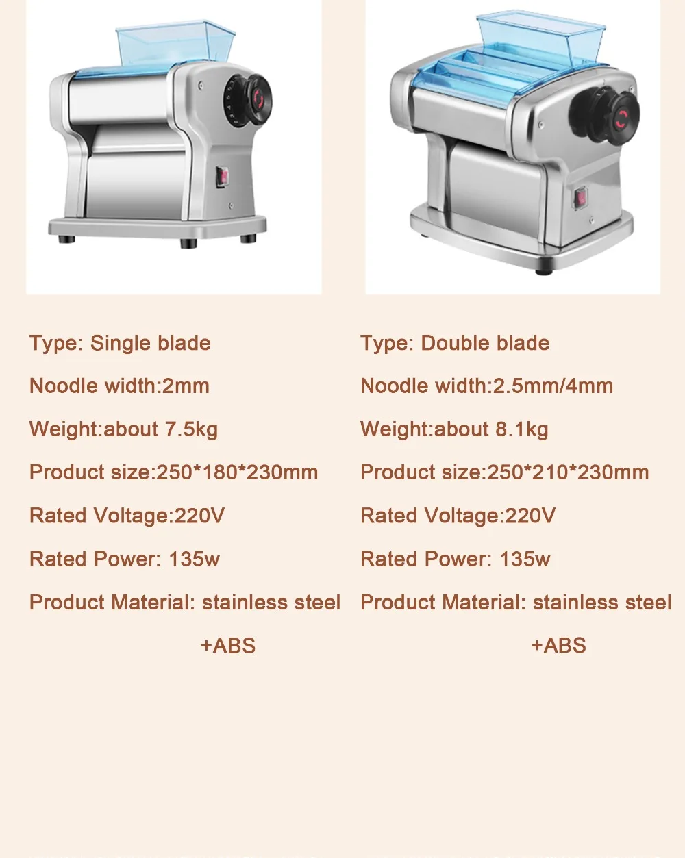 2 blades can cut noodles in 2 sizes: 2.5mm, 4mm