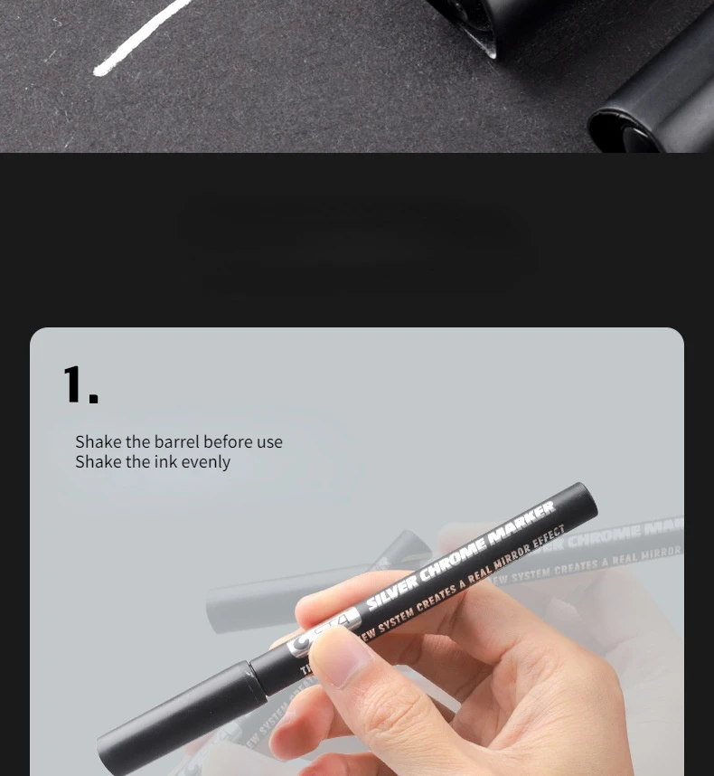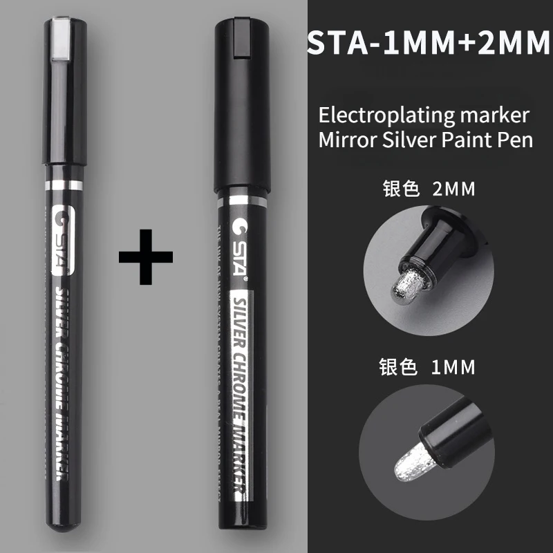 Electroplating Mirror Silver Paint Pen Hand-repair Chrome-plated Metal Waterproof Tire Ceramic Touch-up Paint 1mm/2mm Nib