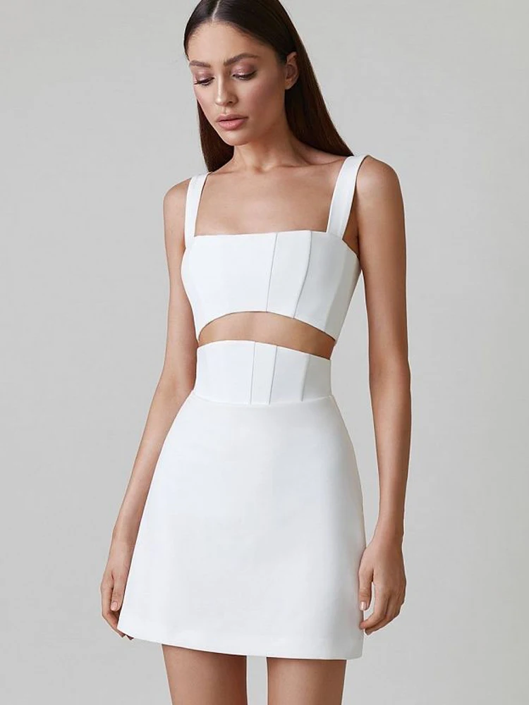 Elegant Women Bandage 2 Two Pieces Sets 2022 New Summer Sexy Tank Sleeveless Tops & Mini Skirts Fashion Club Party Outwear