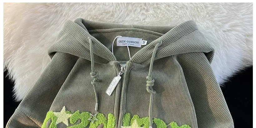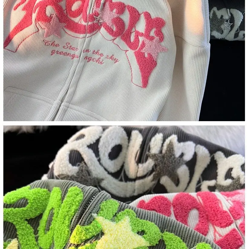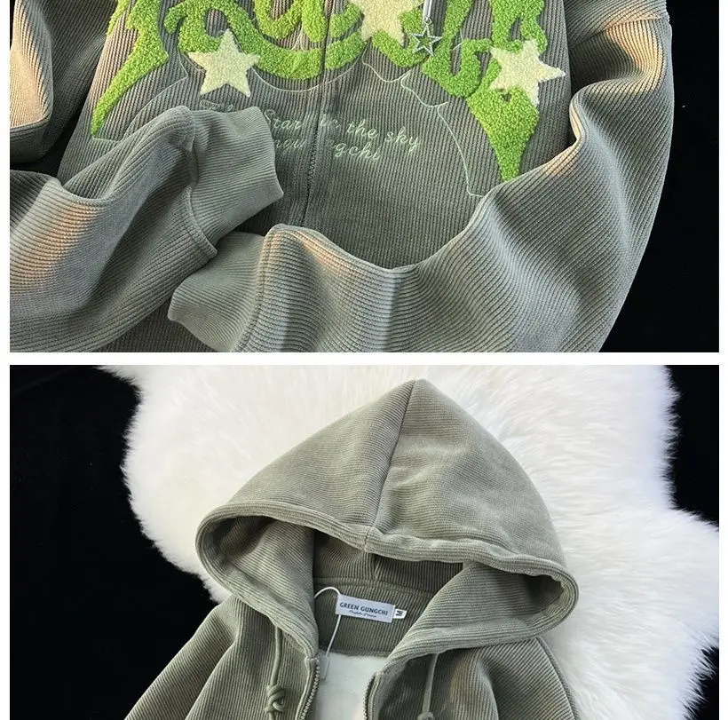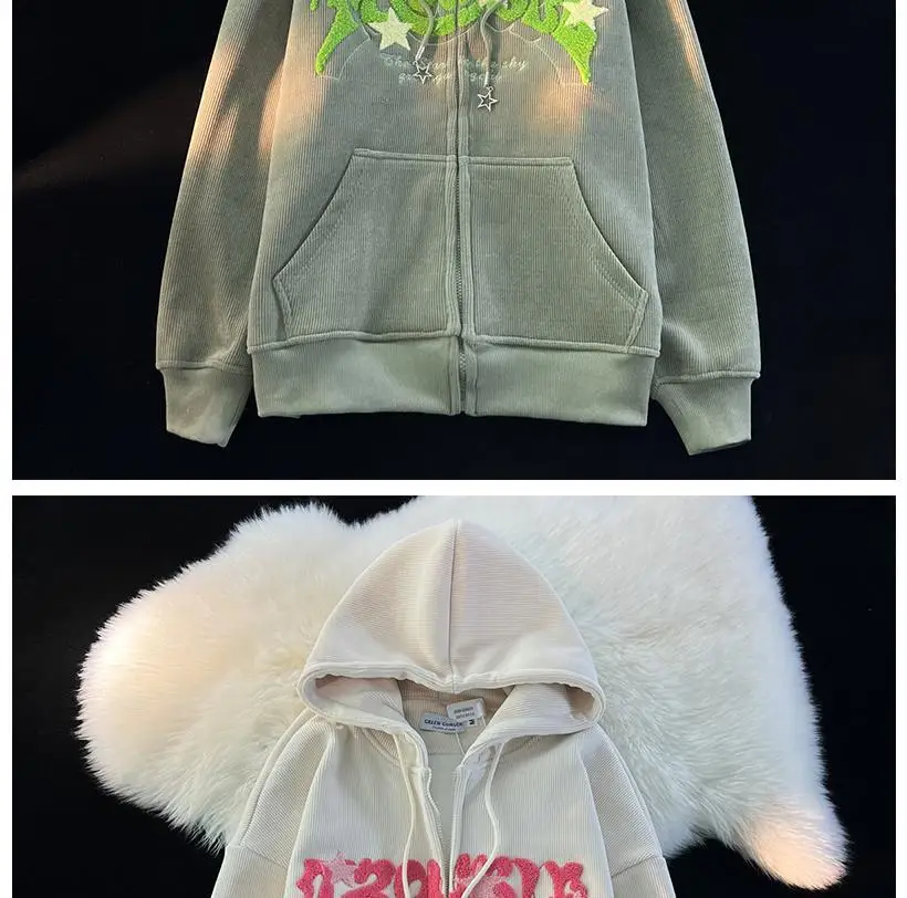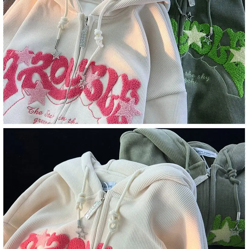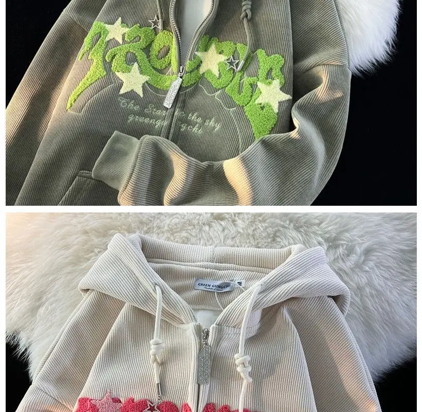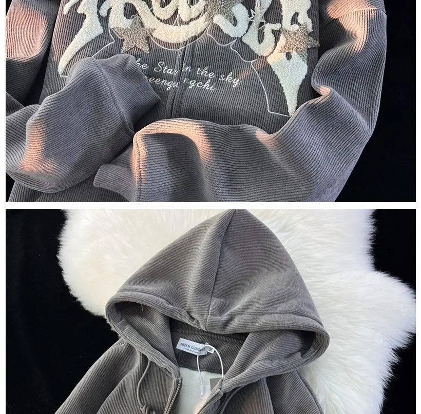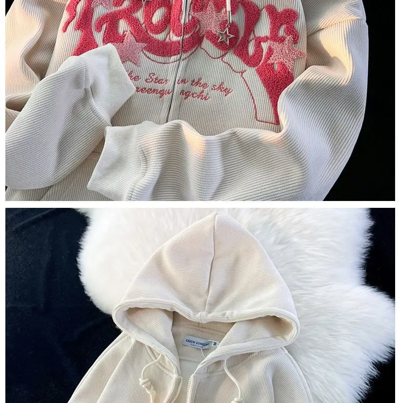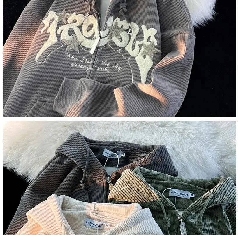 Embroidered Zipper Cardigan Women Clothing Autumn and Winter Retro Hoodie Plush Thick Sweatshirt Loose Drape Lazy Top Women2XL