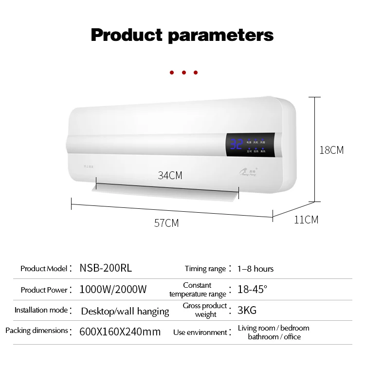 Energy-saving Wall-mounted portable Air conditioner Heating Fan Home Dormitory timing free installation Remote control AC