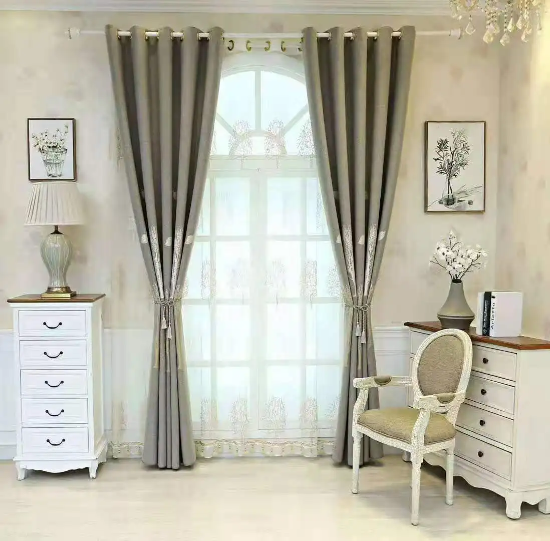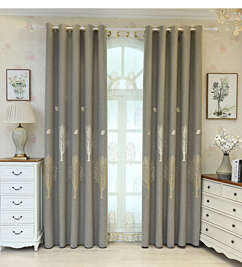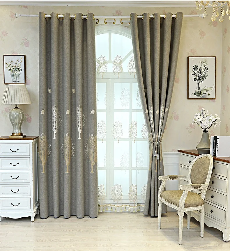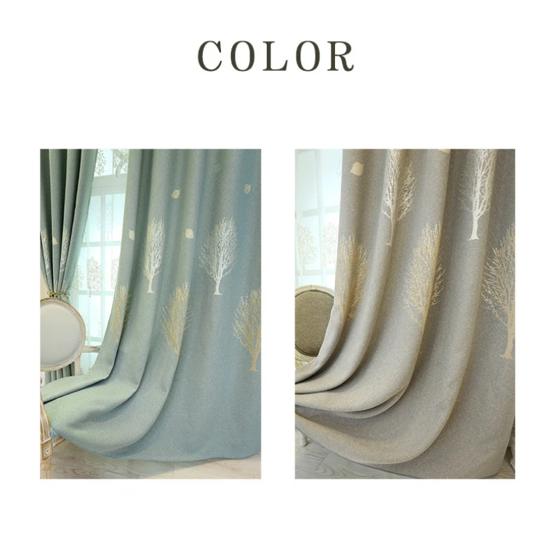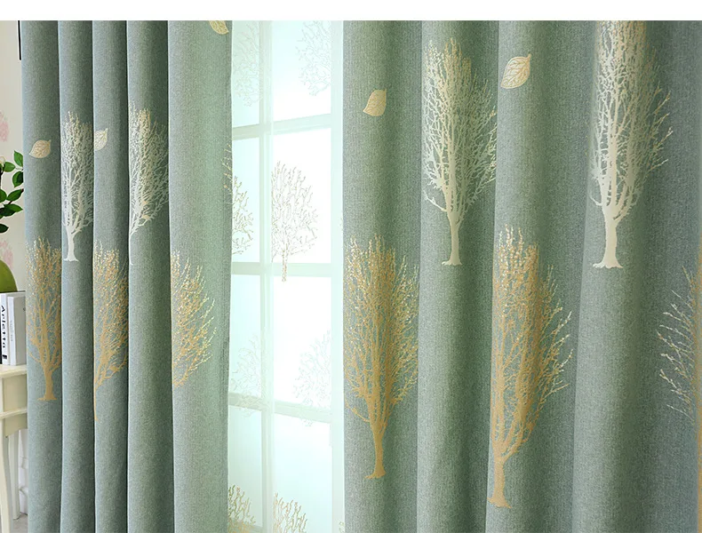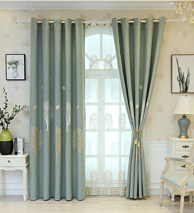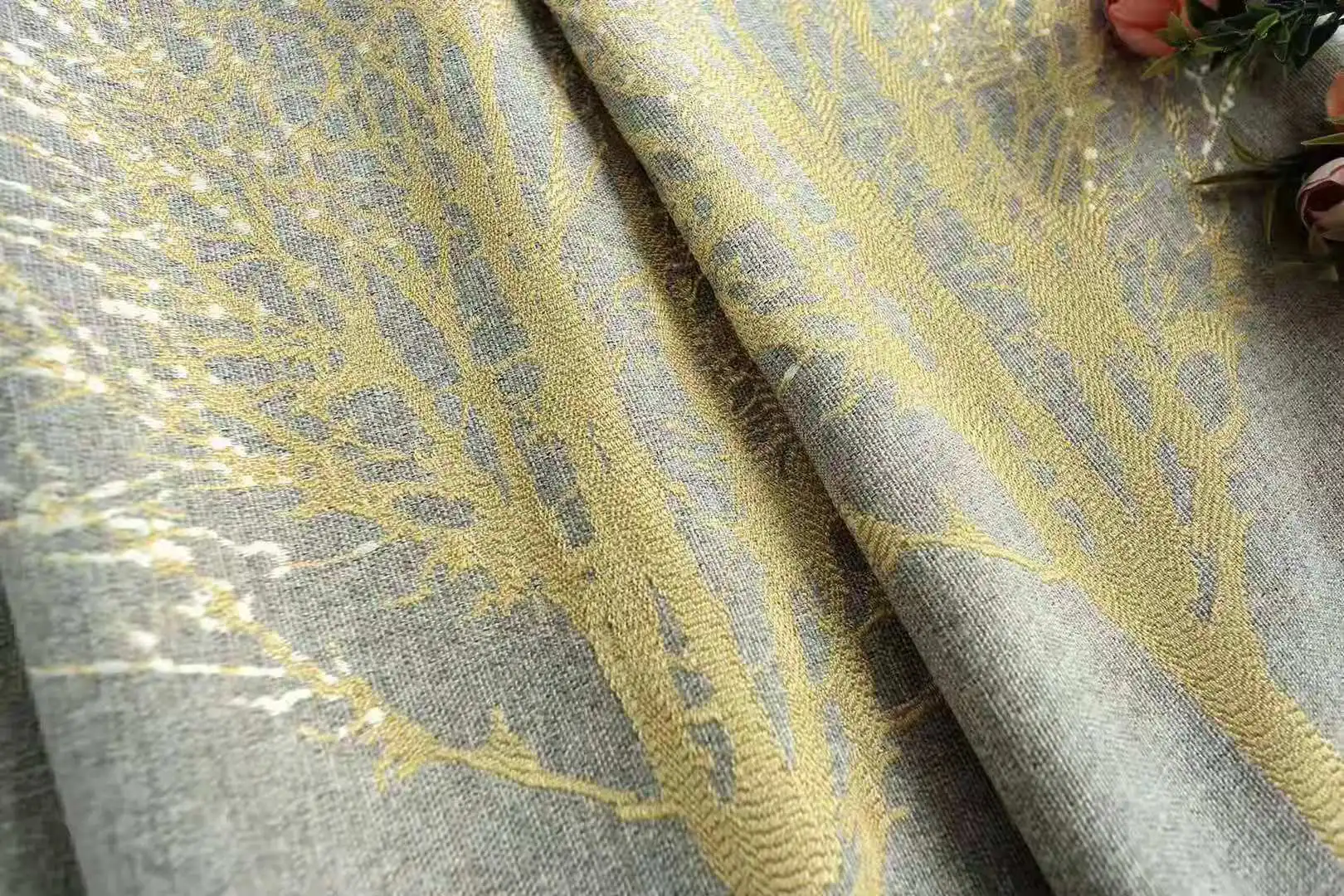 European Blackout Curtains for Living Room Tulle Bedroom Cotton Linen Jacquard Sheer Simple Fresh Fortune Tree Print Home Decor