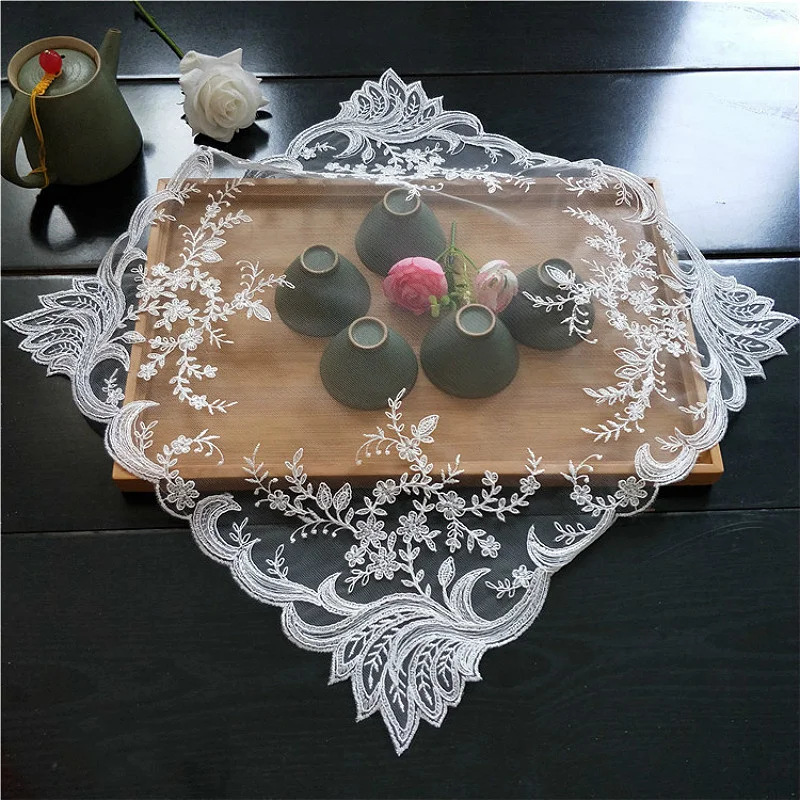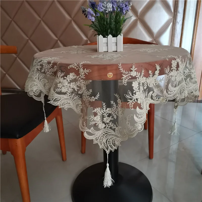 European style lace embroidery pendant tablecloth placemat coaster set bedroom balcony coffee small round table cover cloth banquet party decoration