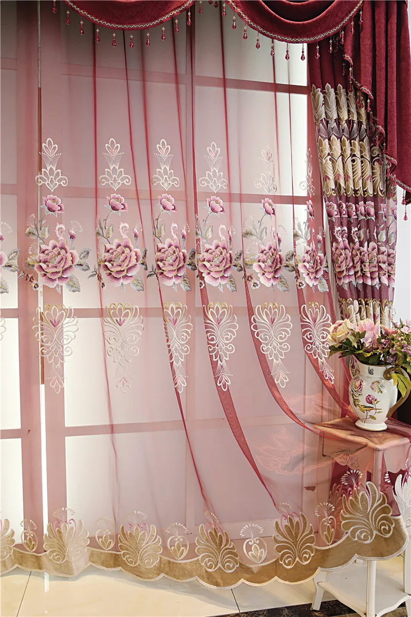 European Style Luxury Wine Red Blue Elegant Embroidered Curtains For Living Room Windows Bedroom Hotel Apartment Custom Curtains