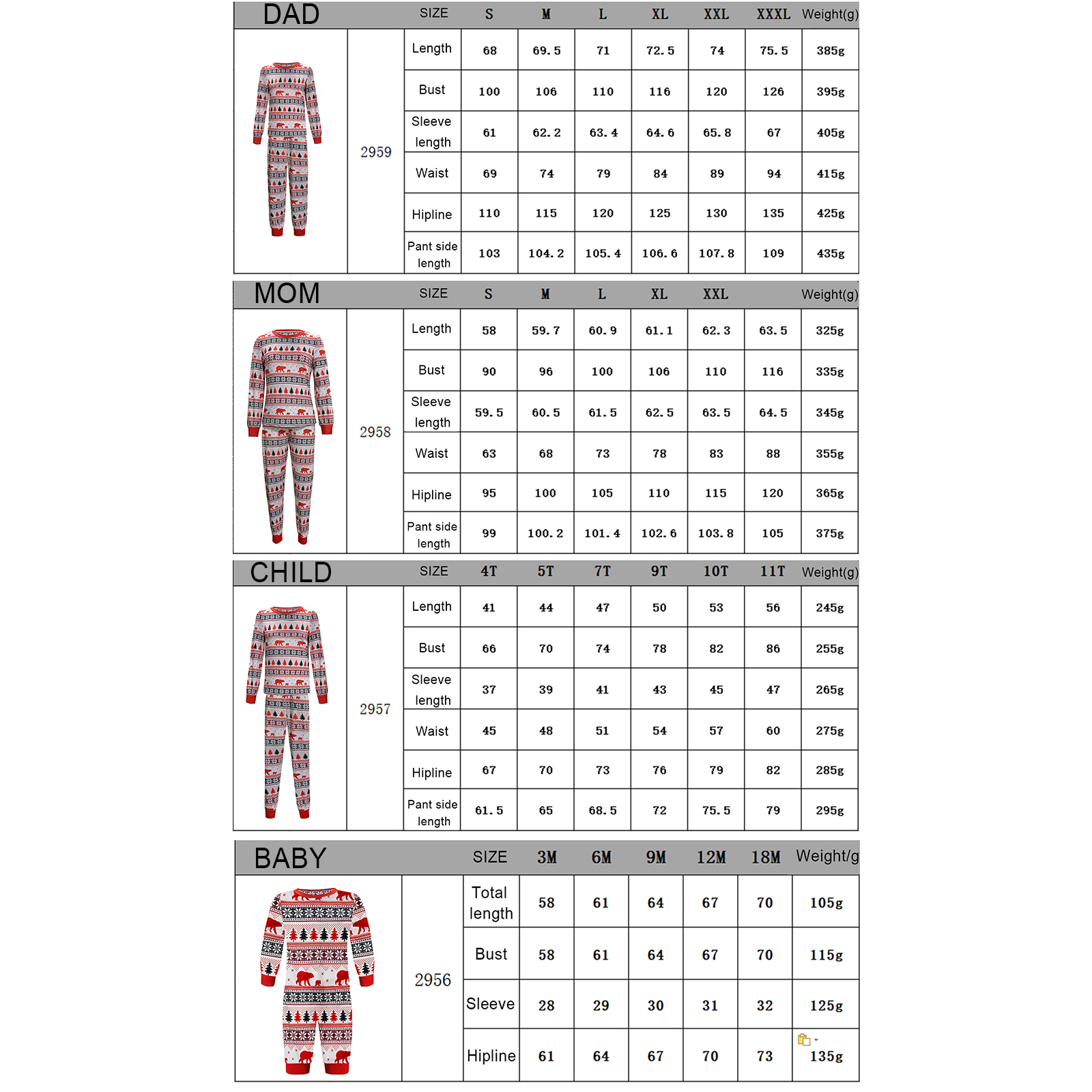 Family Matching Christmas Pajamas Sets Long Sleeve Cartoon Print Tops + Pants or Long Sleeve Jumpsuit