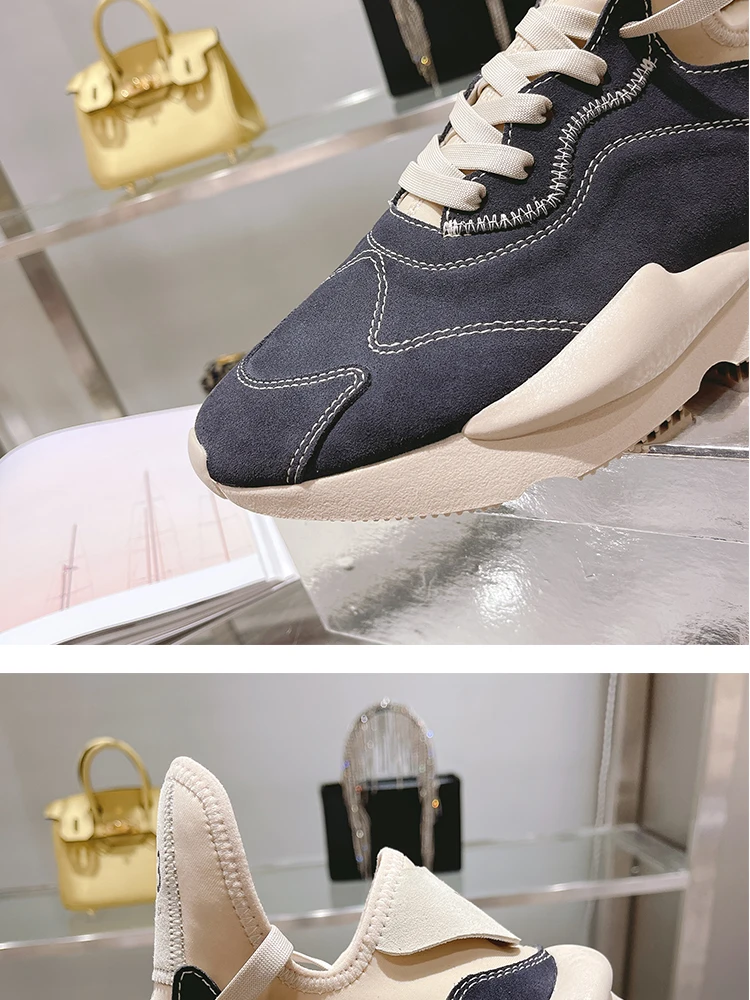 Fashion European and American Casual Shoes Trendy Step-in Sneakers In Genuine Leather Breathable Non-slip Lovers' Sports Shoes