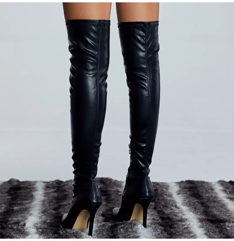 Fashion Faux suede Super High heels Women thigh high boots Elegant thin heeled Stretch Over the knee boots Autumn Winter Long boots