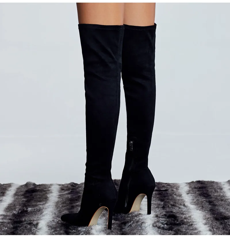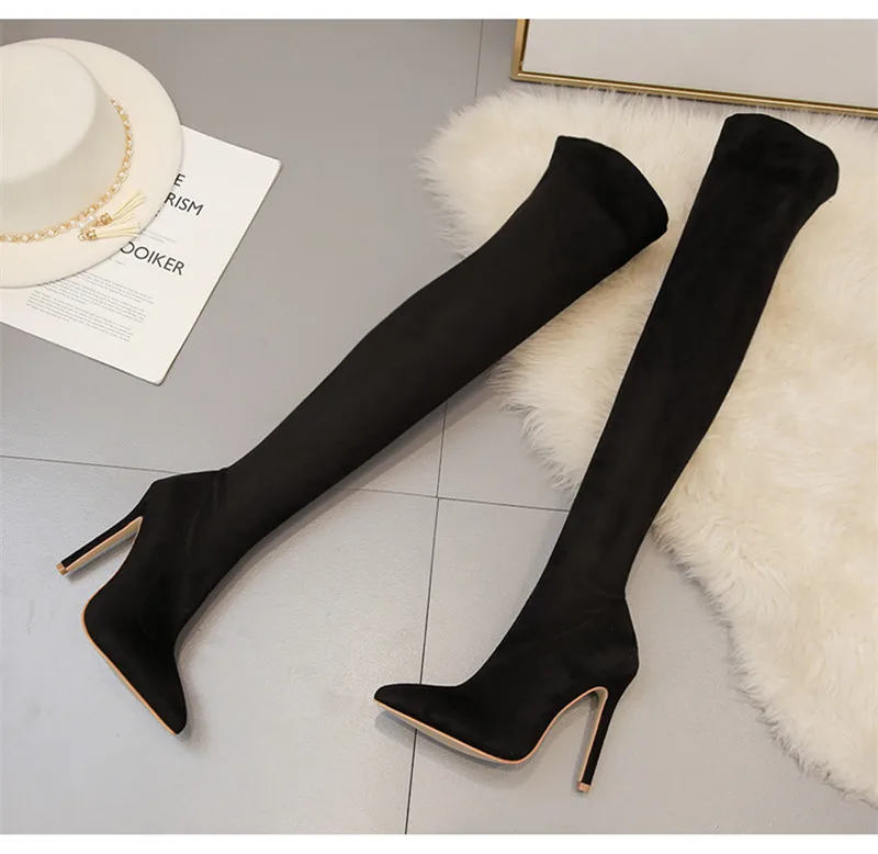Fashion Faux suede High heels Women thigh high boots Elegant thin heeled Stretch Over the knee boots Autumn Winter Long boots