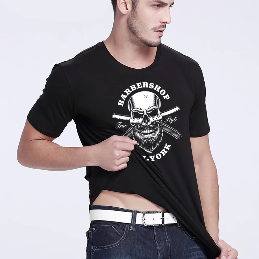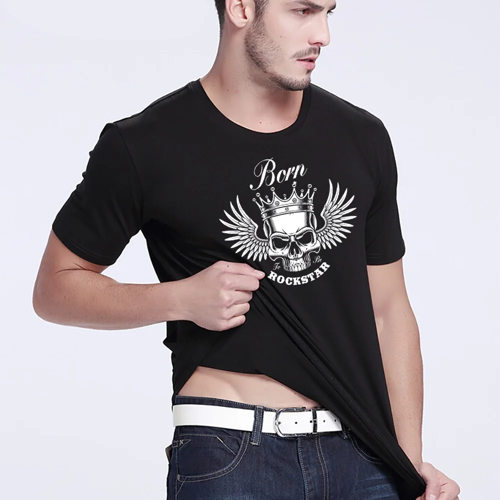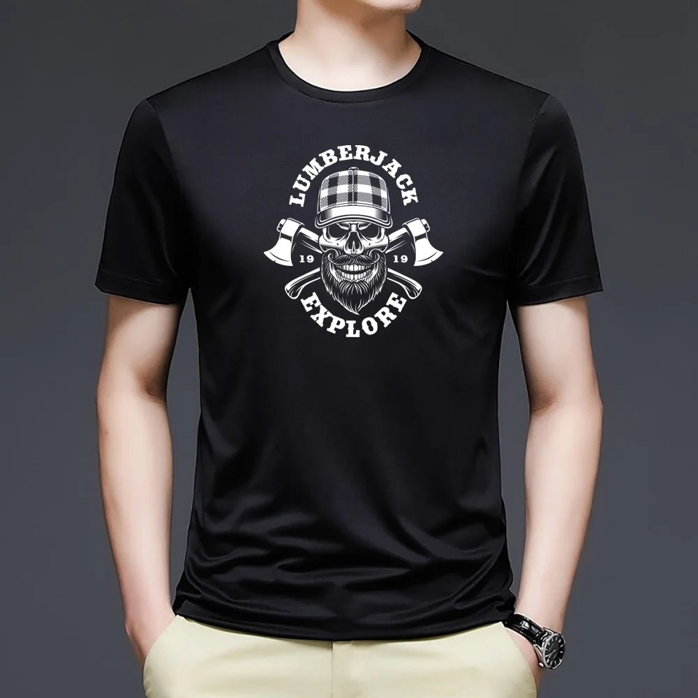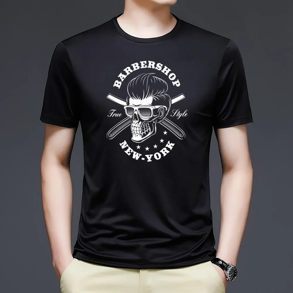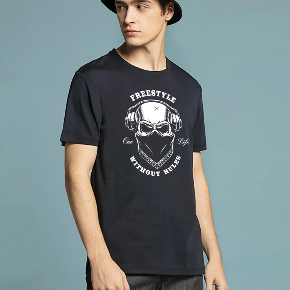 Fashion Short Sleeve O-neck Tops Clothes Men T-shirt Skull Printing Commuter Tees Harajuku 2022 Summer Black Hip Hop Streetwear