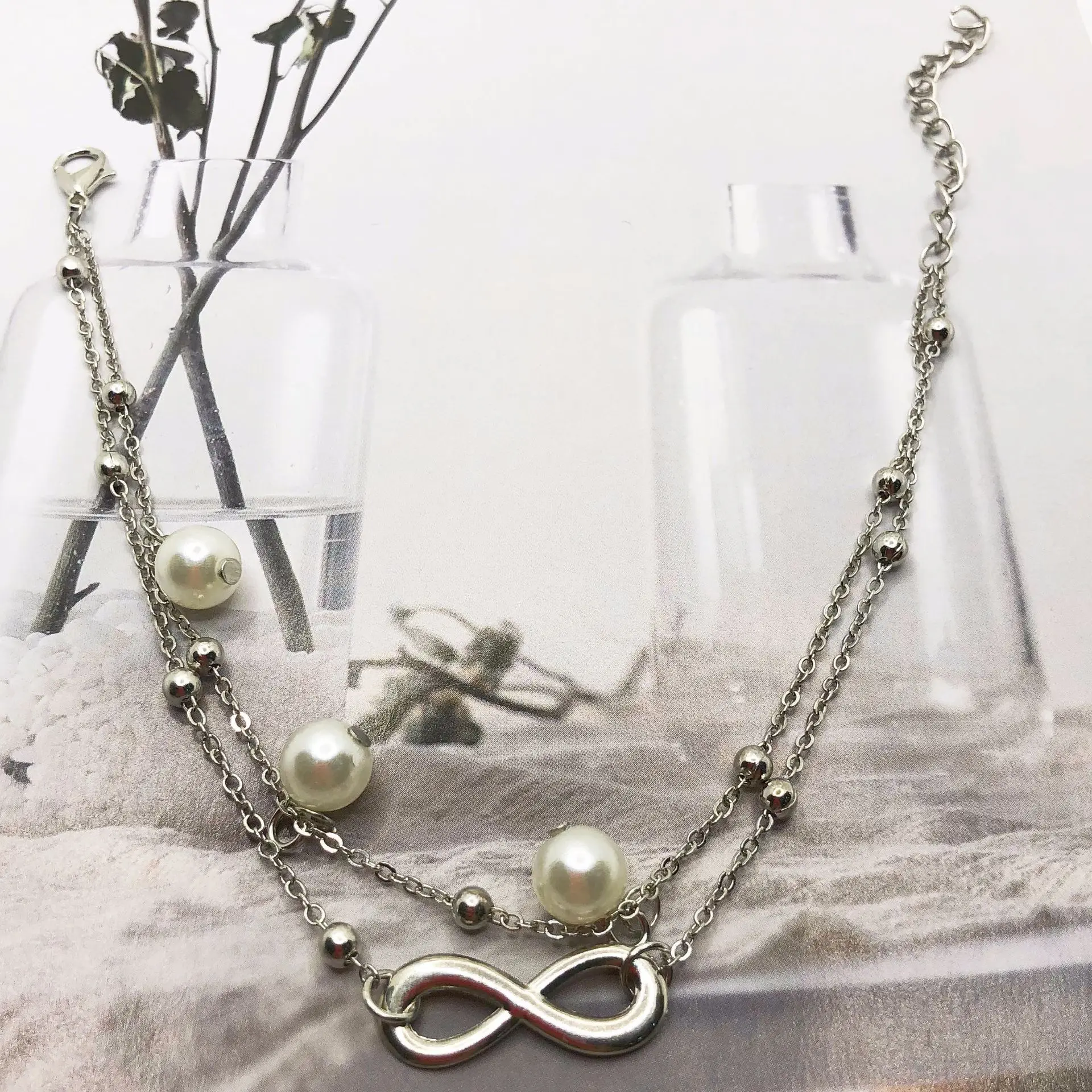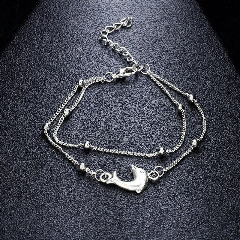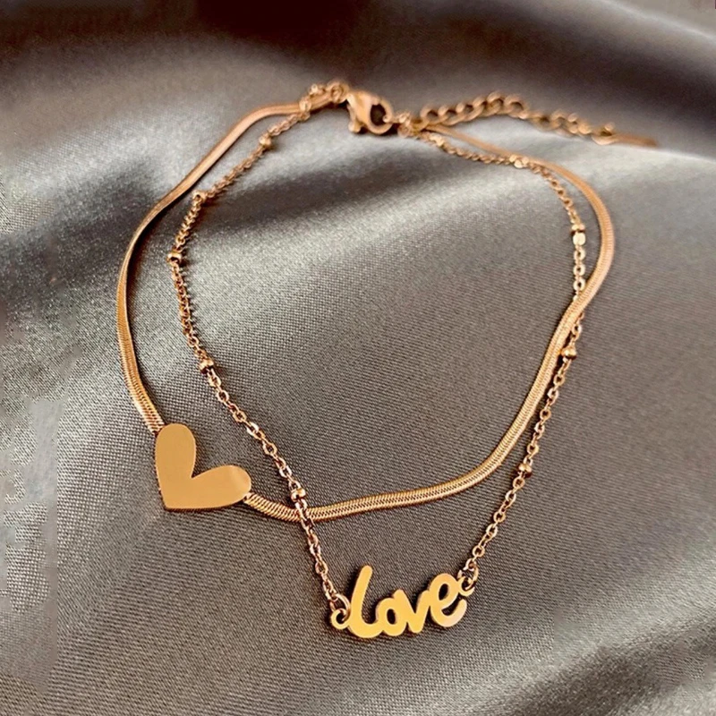 Fashion Simple Double Layer Love Heart Rhinestone Anklet For Women Girl Hand-woven Adjustable Link Anklet Bracelet Beach Jewelry