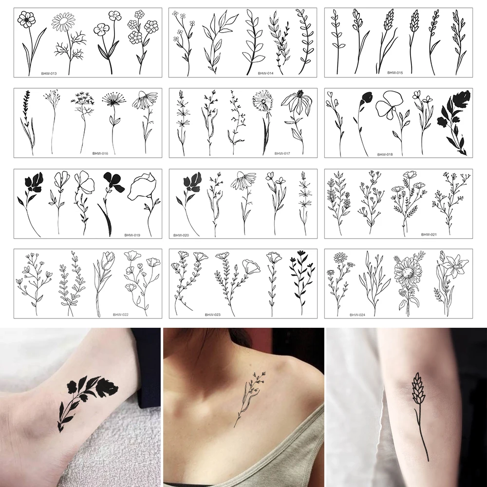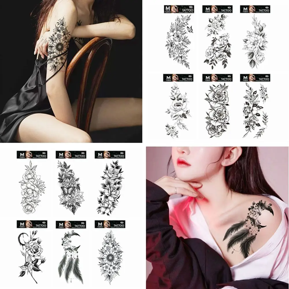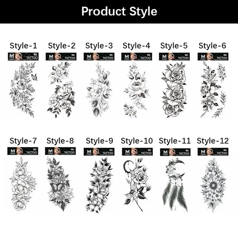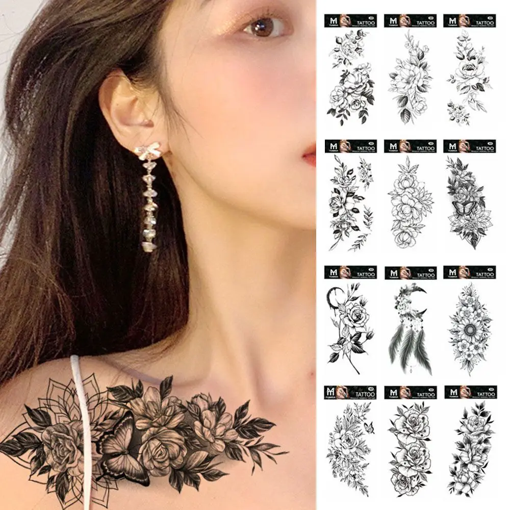 Fashion Waterproof Fake Tattoo Sticker Various Easy To Use Temporary Tattoos Black And White Flowers Tattoo Body Art