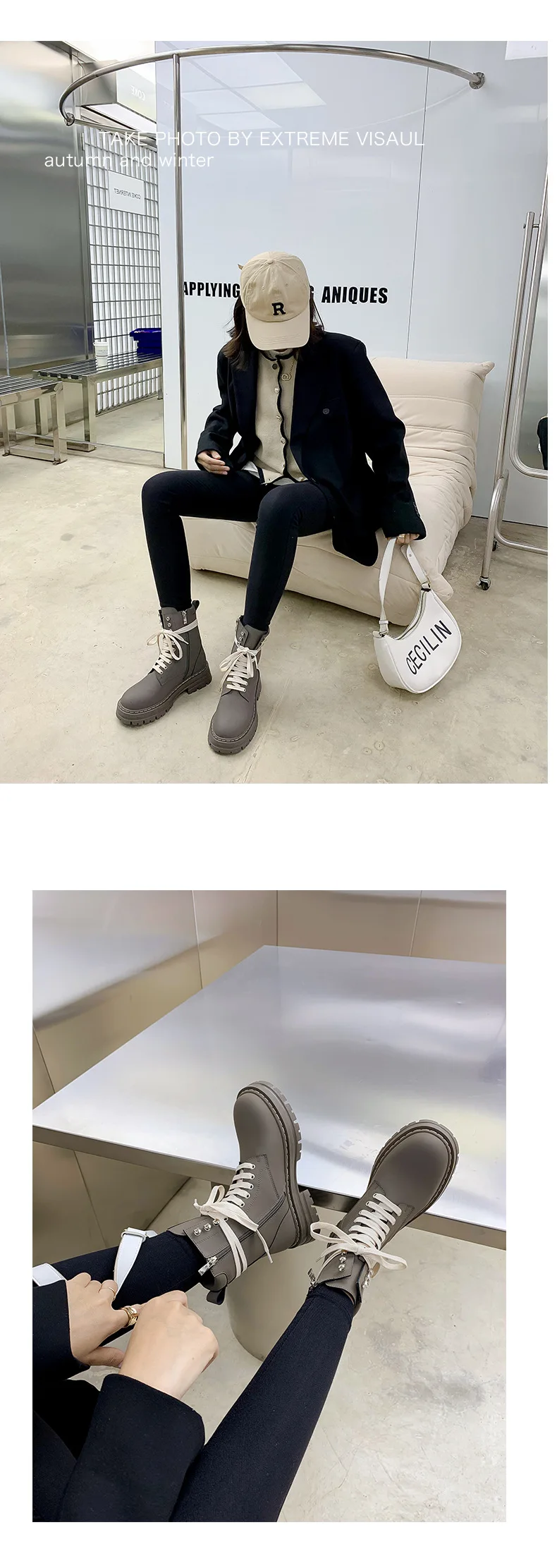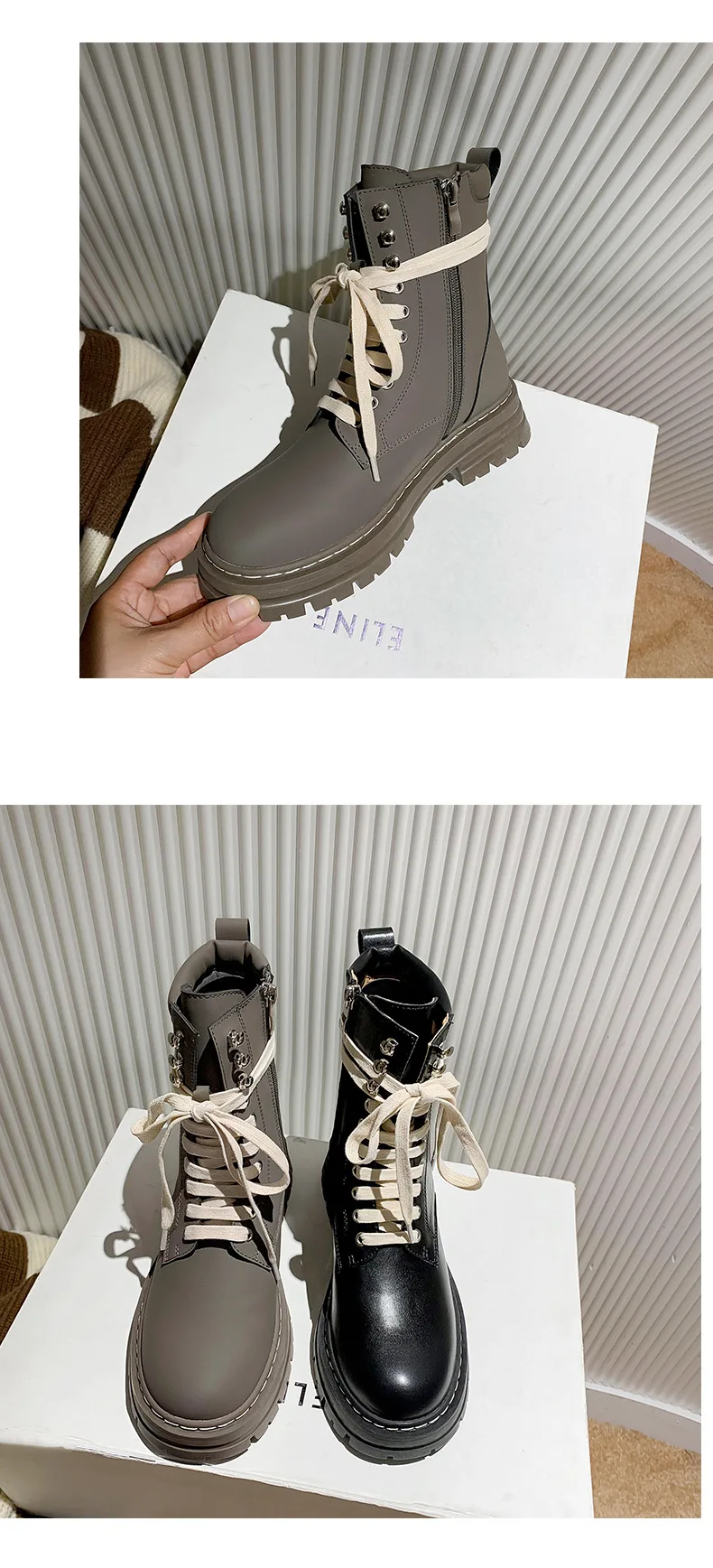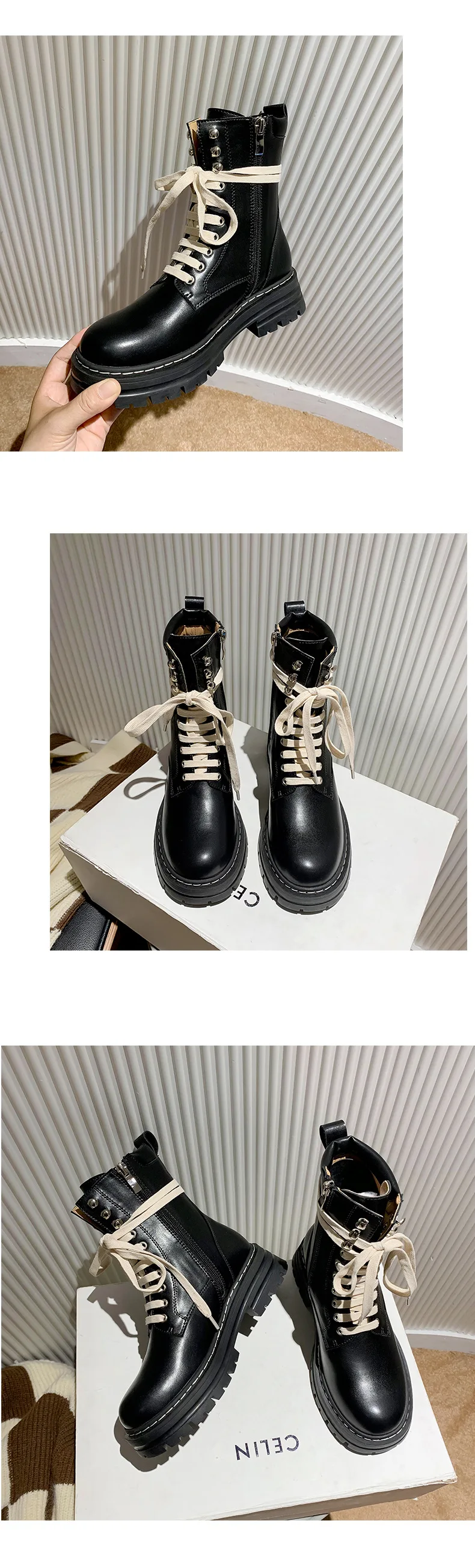 Fashion Women's British Style Thick Bottom Thin Boots High Short Shoes