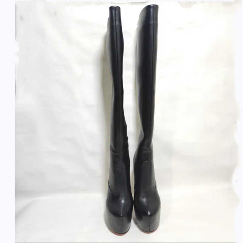 Fashionable women's boots. About 18 cm high heels. Fashion show banquet shoes. Knee high women's boots. Round toe boots..