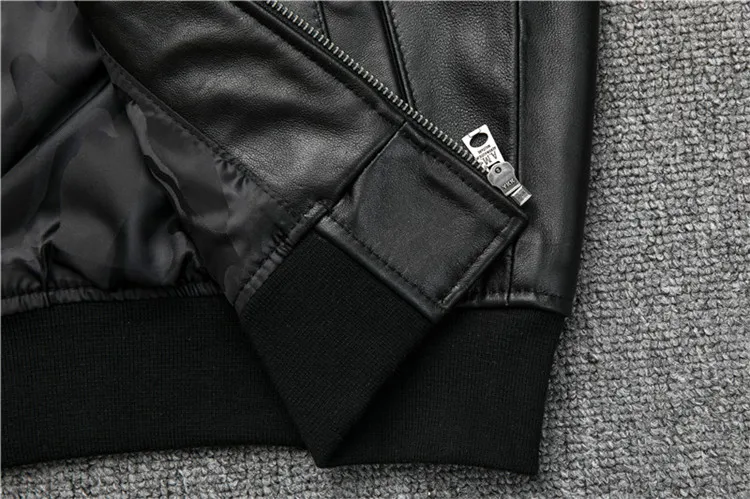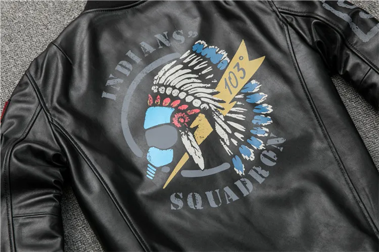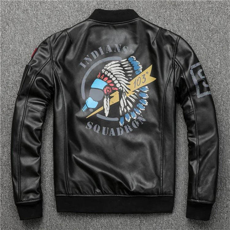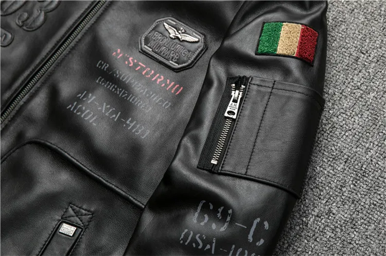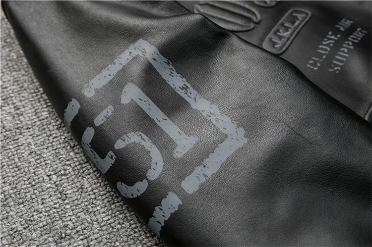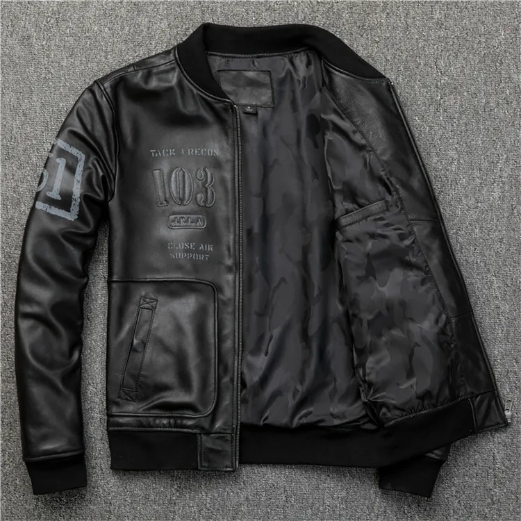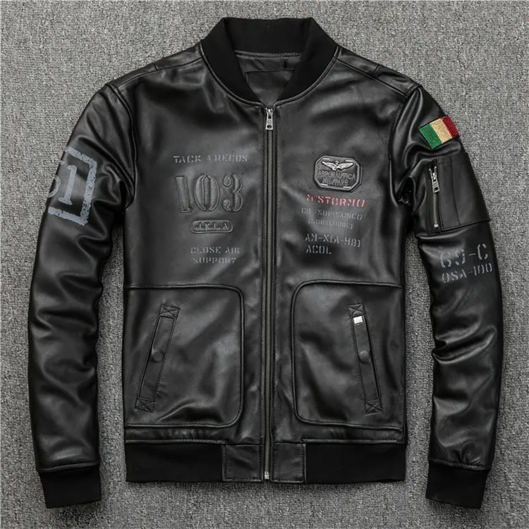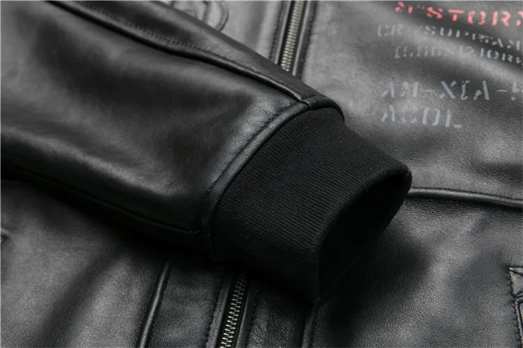 Fast Shipping Men's Black Genuine Leather Jacket 3D Pattern A1 Pilot Sheepskin Vintage Coat Bottom Pleated Jacket