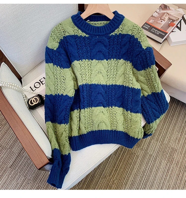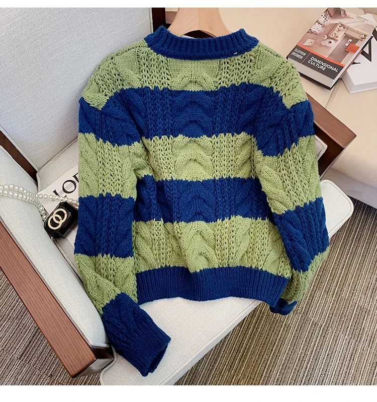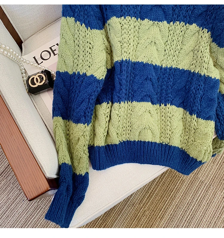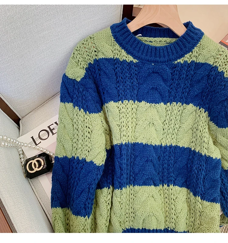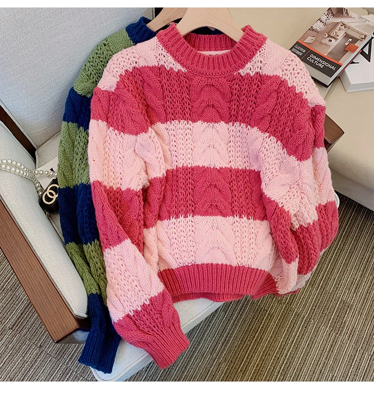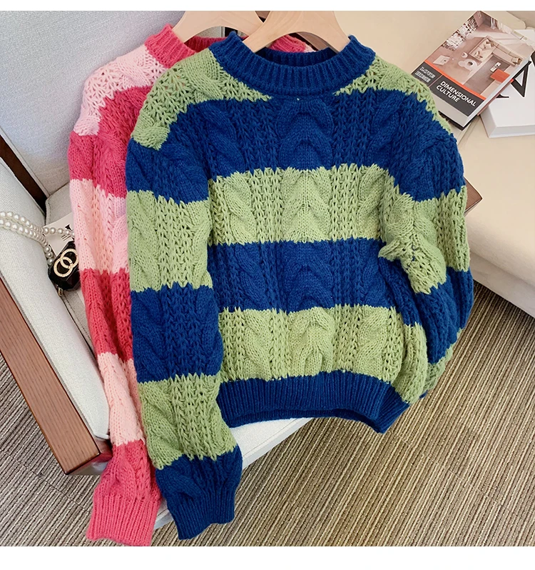 Film pattern more loose raccoon wool knit female winter fashion color stripe hemp sweaters
