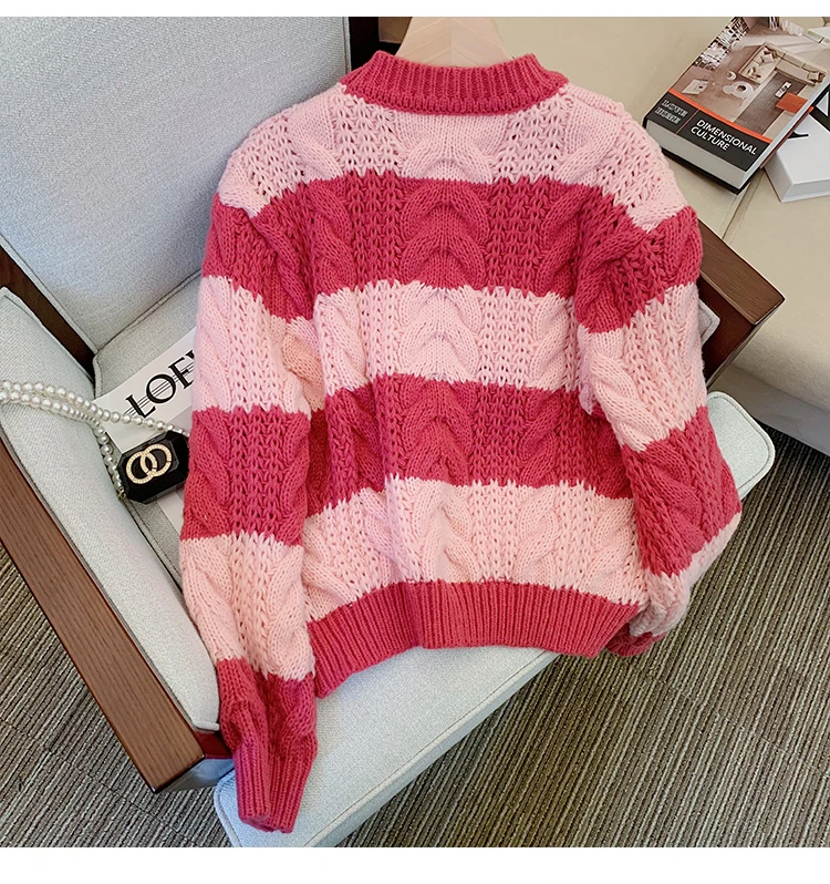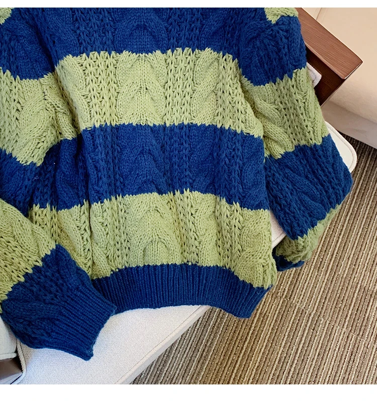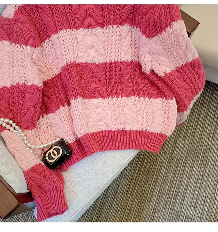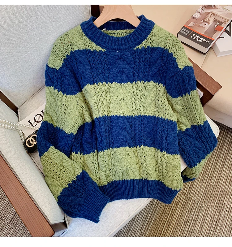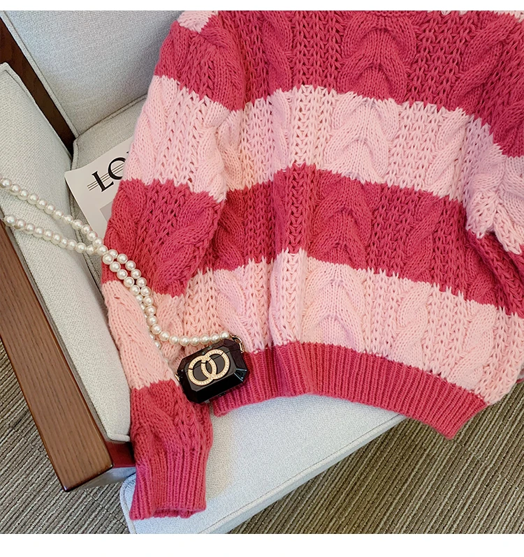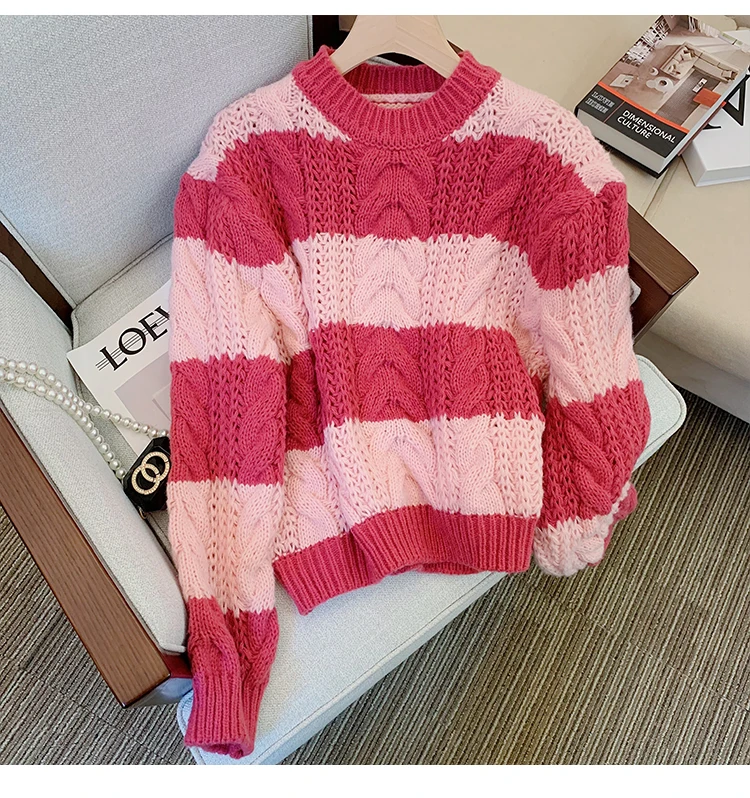 Film pattern more loose raccoon wool knit female winter fashion color stripe hemp sweaters