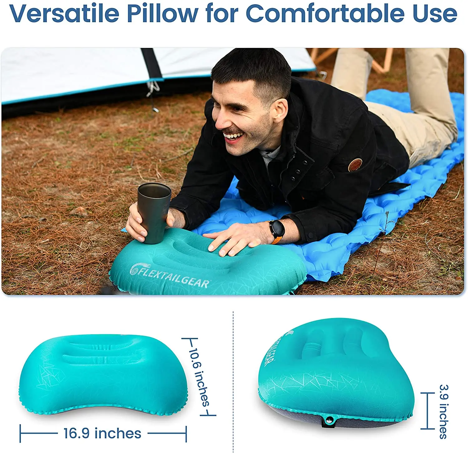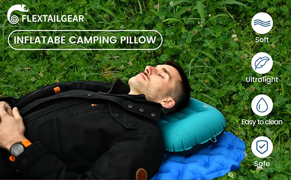 FLEXTAILGEAR Ultralight Inflatable Camping Pillow – Compressible, Compact, Ergonomic Pillow for Sleeping, Car Camp or Beach