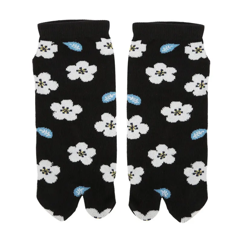 floral print cotton two toe socks couple split toe socks Japan two finger socks tabi socks