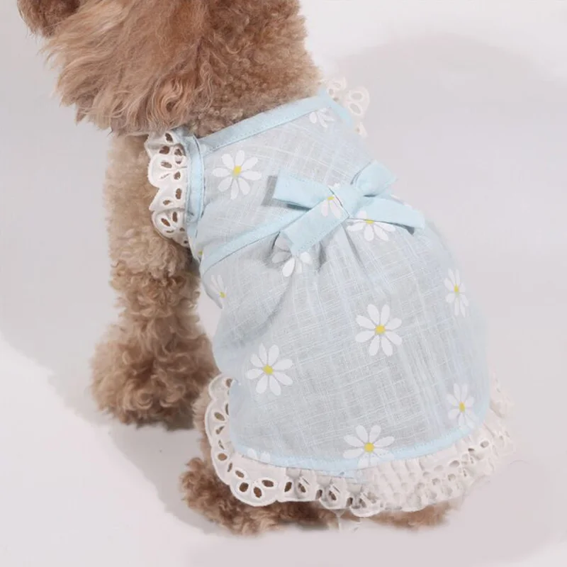 Dog sunflower lace skirt,cotton material,soft and comfortable,skin-friendly and breathable.The flower design makes the skirt more beautiful,and pets are more cute and sweet to wear.