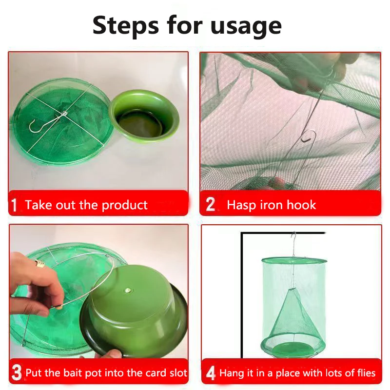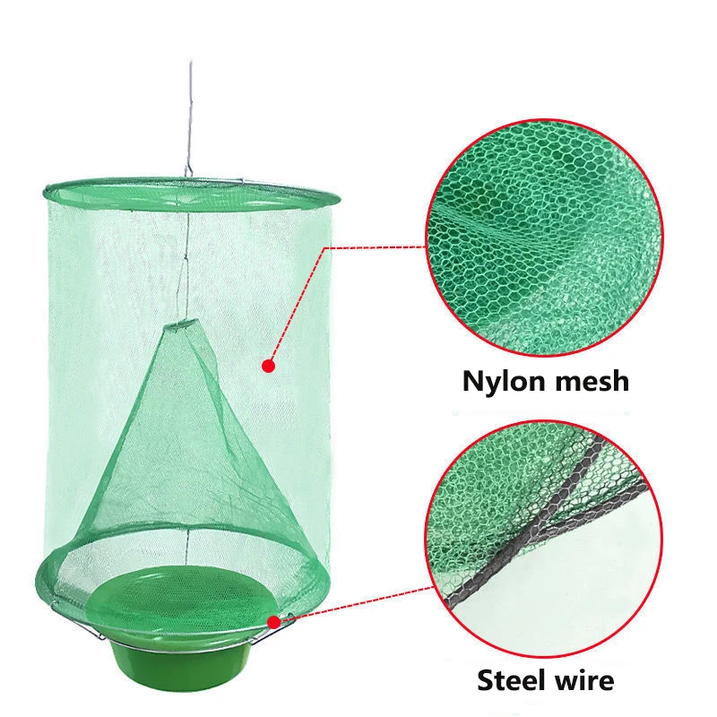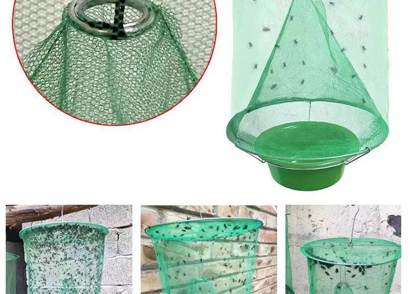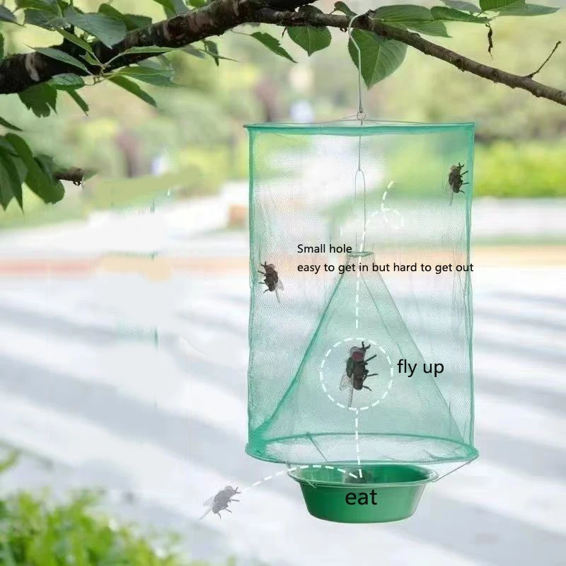 Fly Trap Outdoor Hanging Reusable Fly Catcher Folding Net Garden Insect Catcher Bait Station Cage Net Trap Pest Control Trap