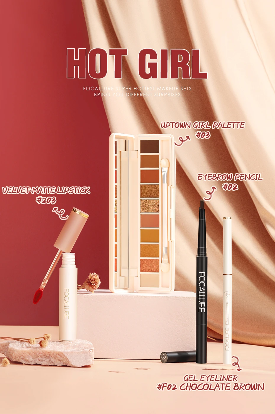 FOCALLURE Hottest Gril Makeup Set Include Eyeshadow Palette Velvet Matte Lipstick Eyebrow Pencil Gel Eyeliner Women Cosmetic Kit