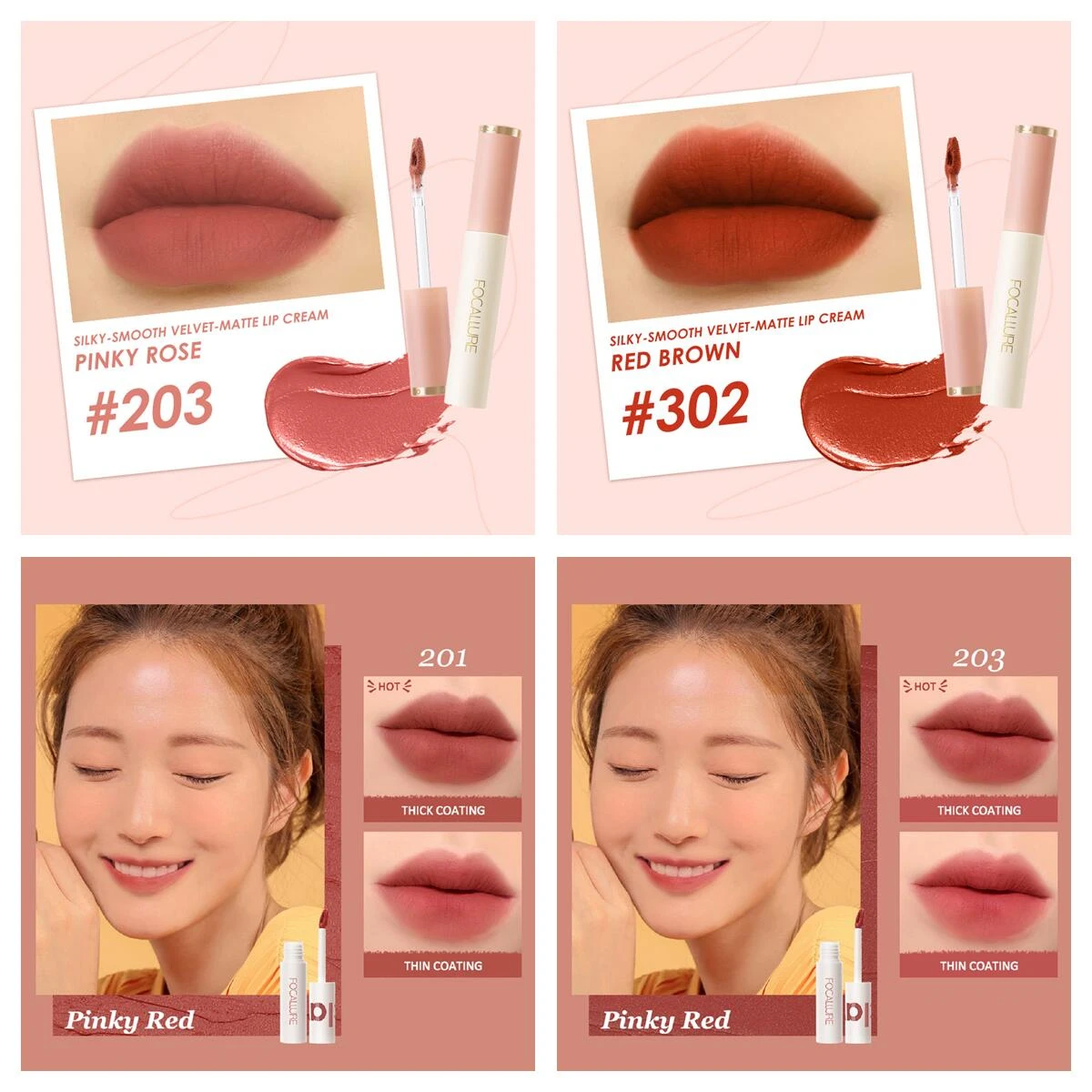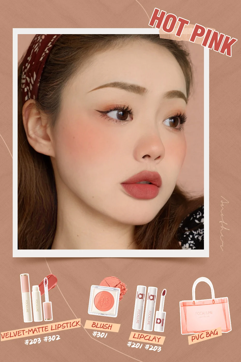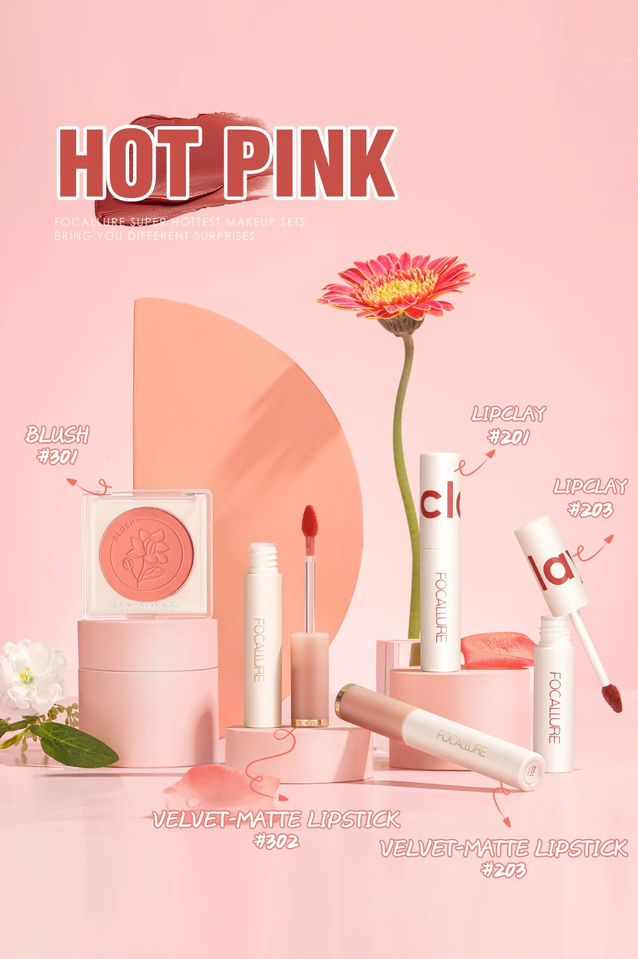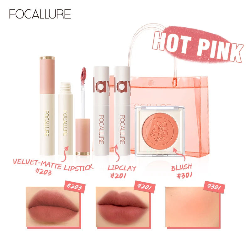 FOCALLURE Hottest Pink Makeup Set Include Velvet Matte Lipstick Misty Lip Gloss Face Blusher Long-lasting Natural Women Cosmetic