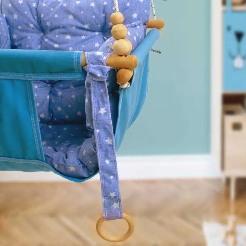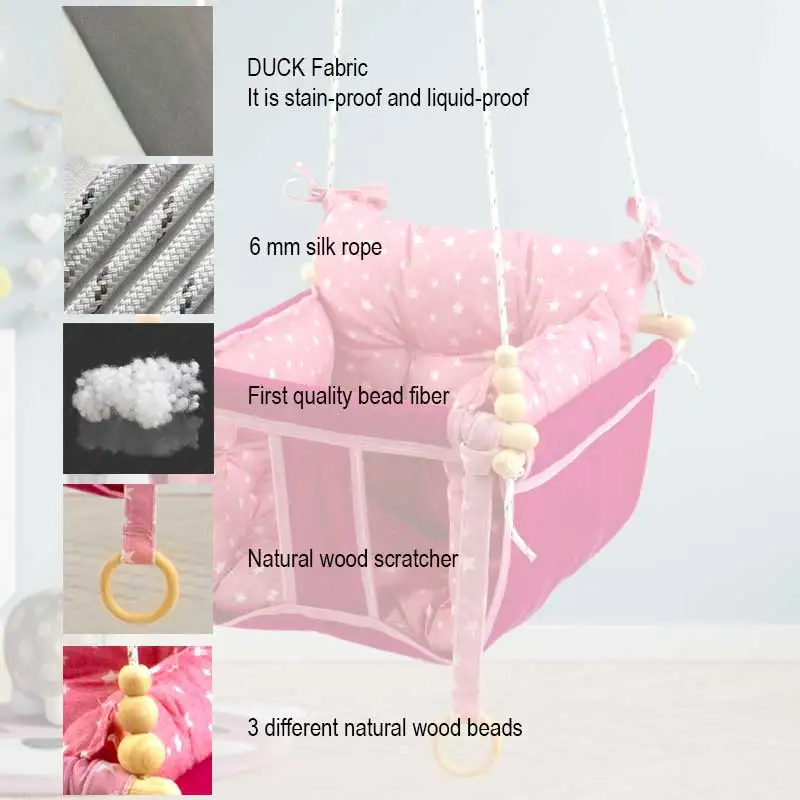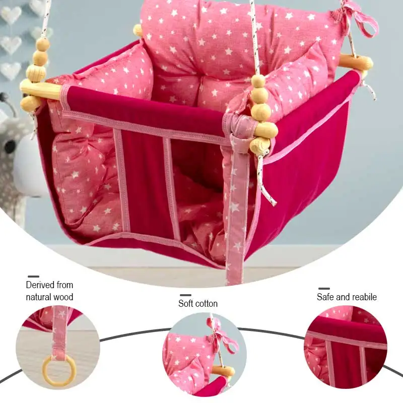 .Liquid scroll capability and stain-free 100 Cotton Duck fabric used Bundera Wag Swing Child Wooden Swing 60 kg Bearing capacity.