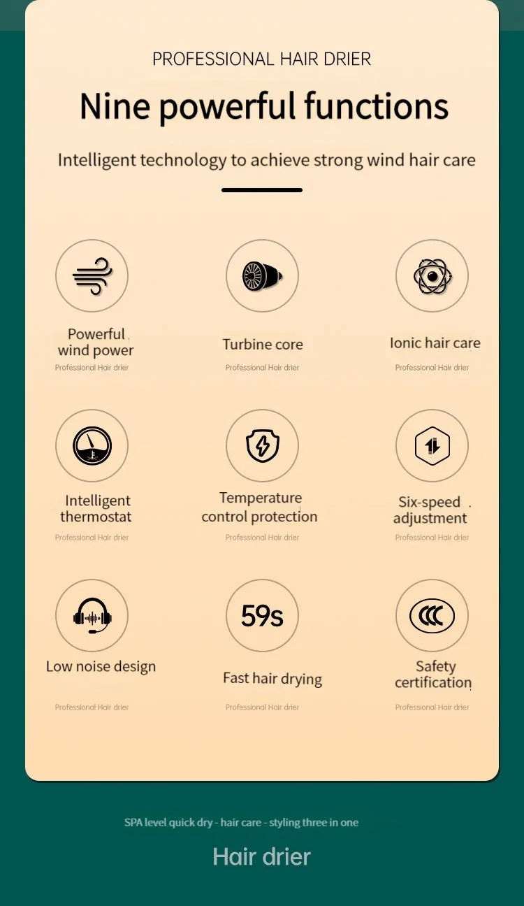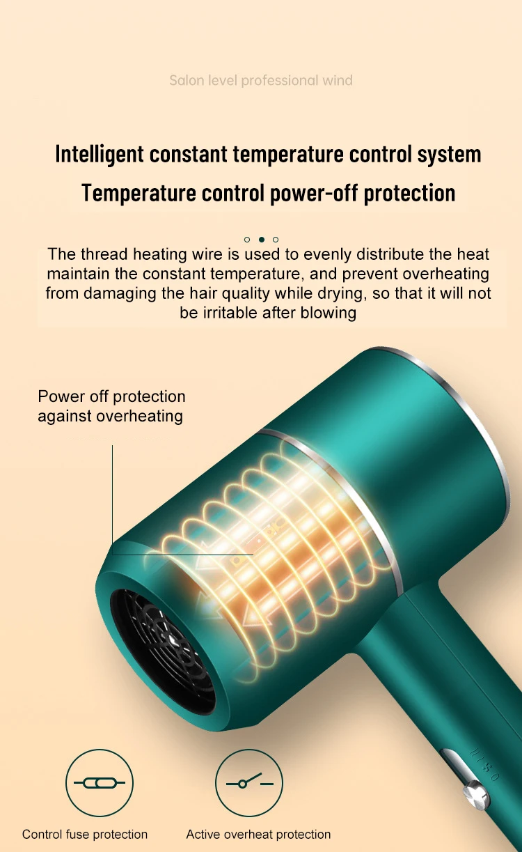 Features: constant temperature hair care, four-speed temperature control, quick drying