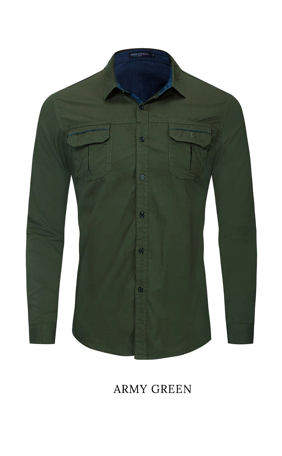 Fredd Marshall 2019 Autumn New Classic Military Shirts Men Casual Solid Color Cargo Basic Shirt Long Sleeve 100% Cotton Tops 213