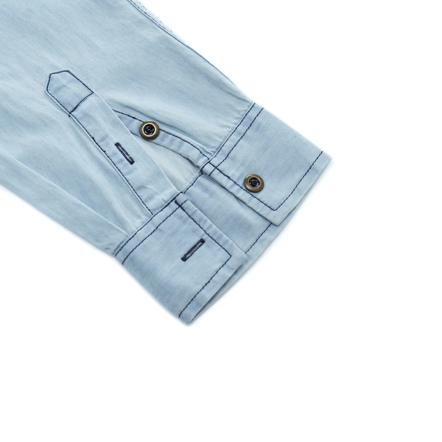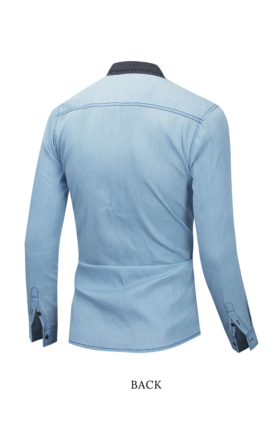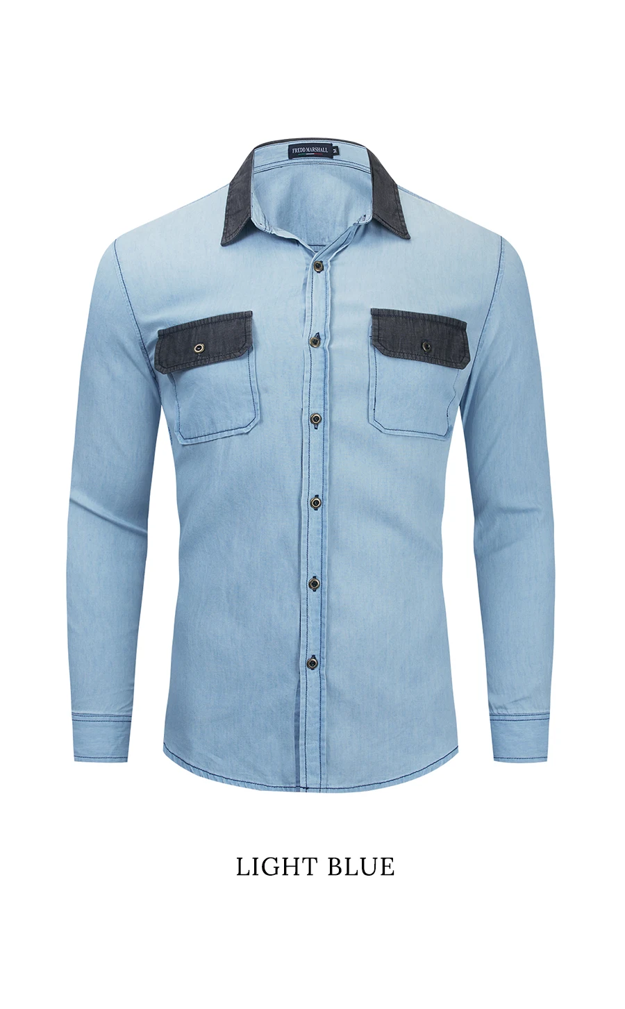 Fredd Marshall 2021 New Fashion Patchwork Denim Shirt 100% Cotton Casual Button Down Dress Shirt Men Long Sleeve Work Shirt 4006