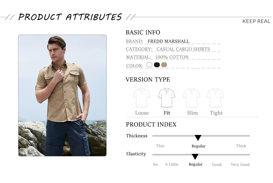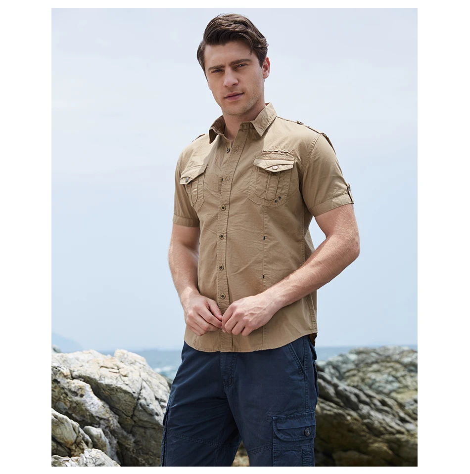 FREDD MARSHAll Brand New Arrival Mens Cargo Shirt Men Casual Shirt Solid Short Sleeve Shirts Work Shirt for Male Plus Size 55890