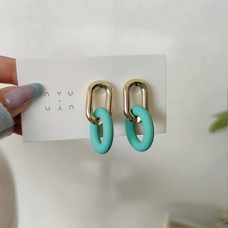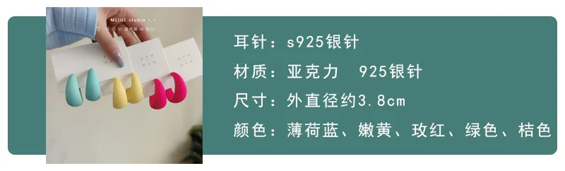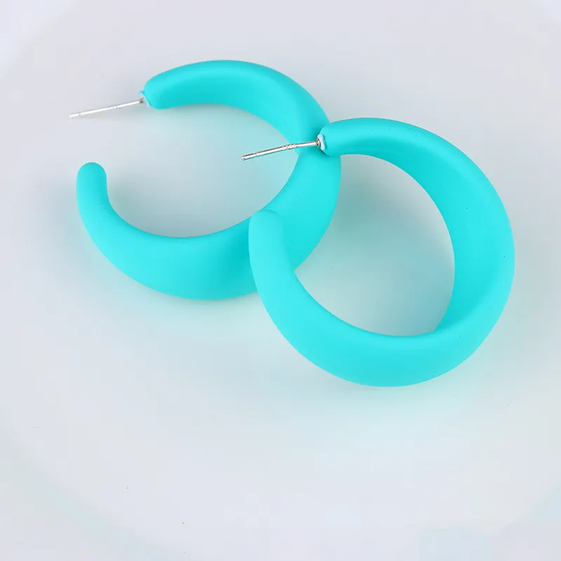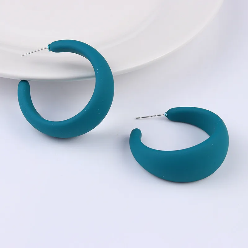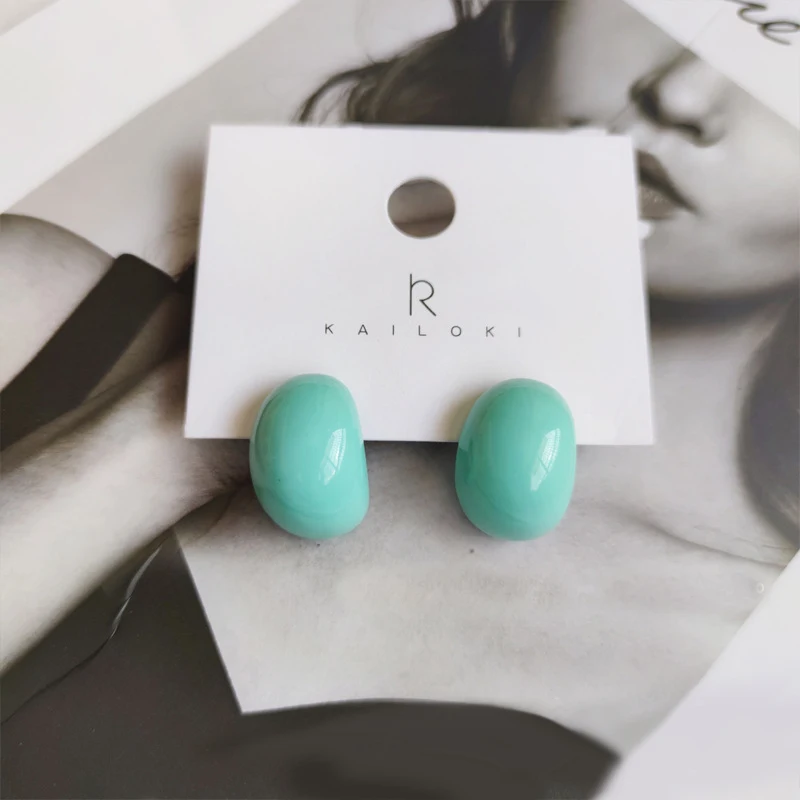 Fresh mint blue wild C-shaped earring earrings girl heart soft girl candy color Korean style earrings women