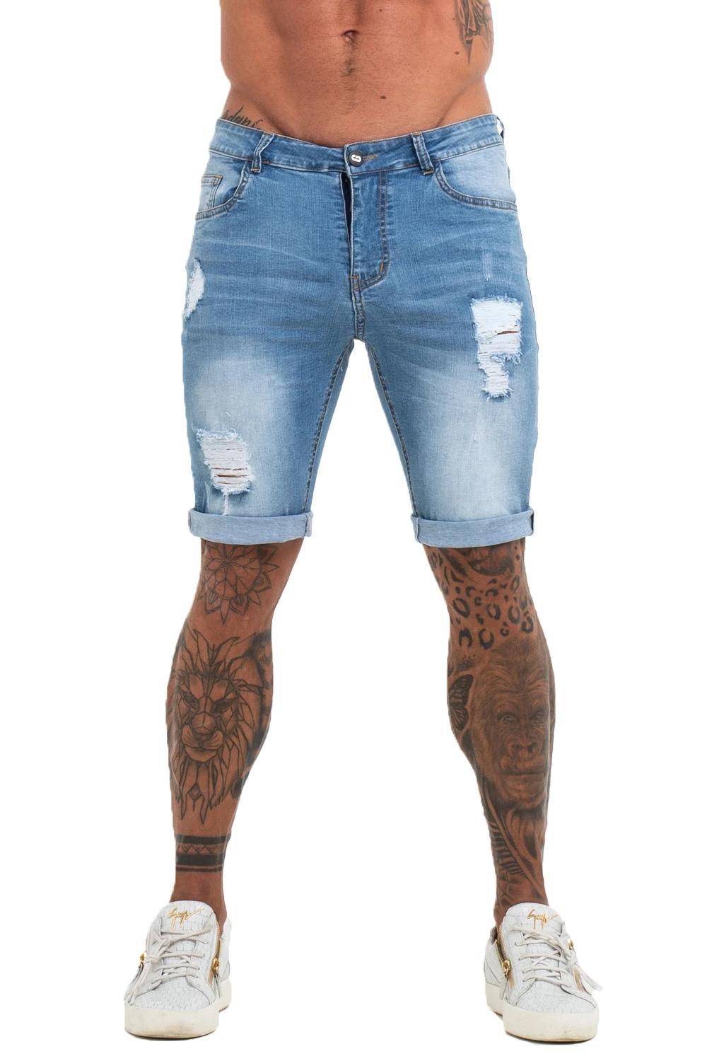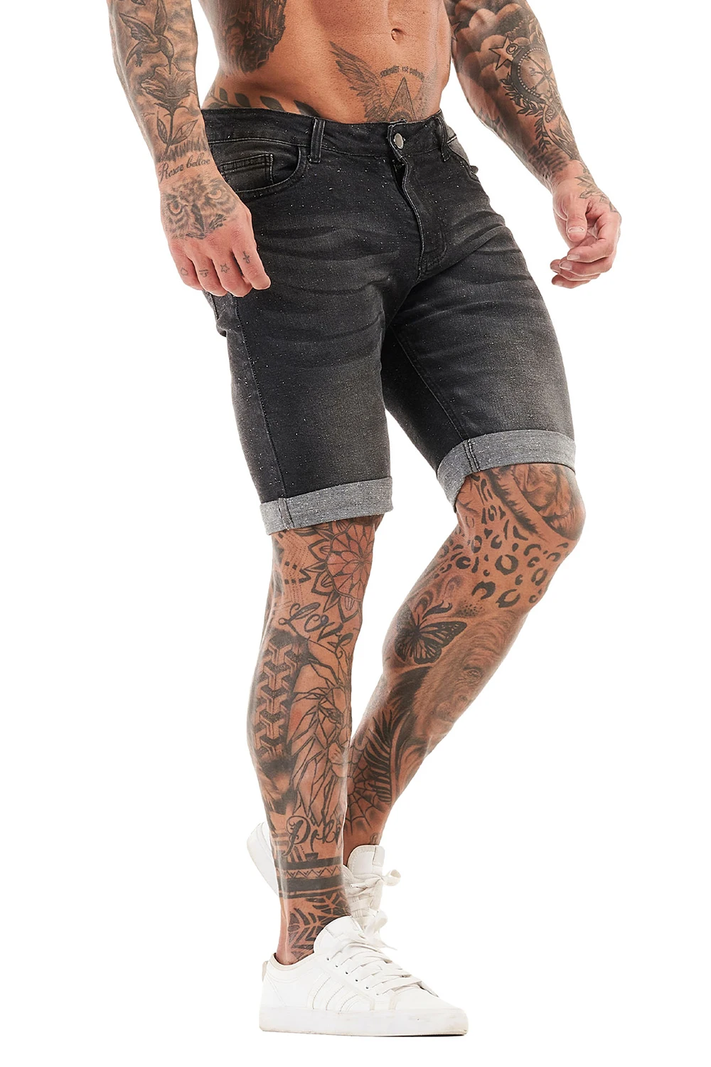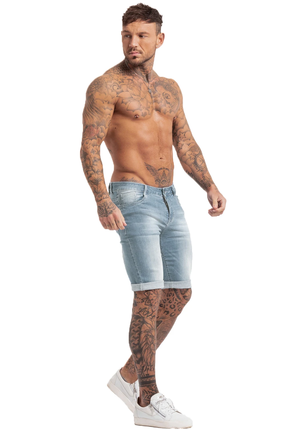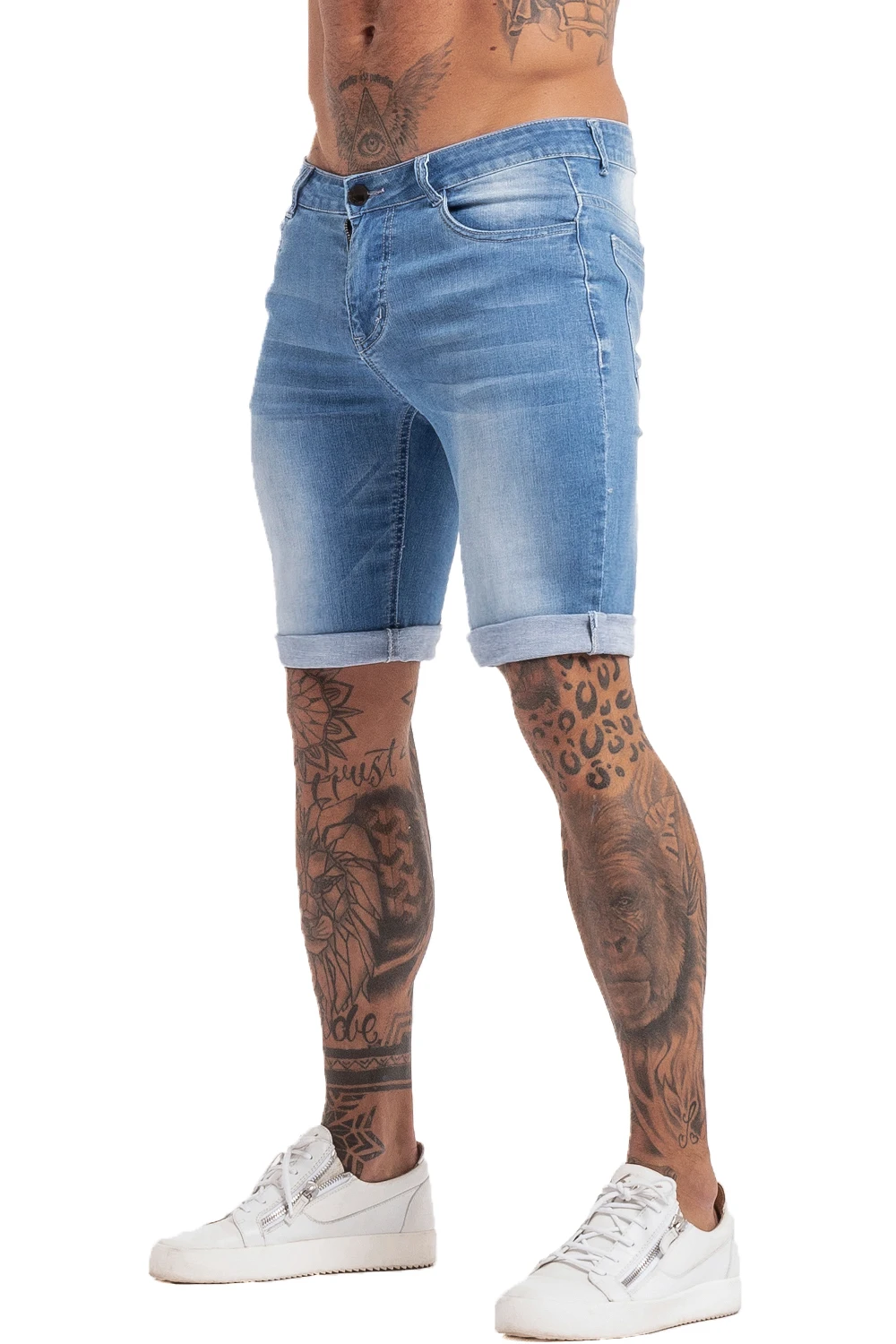 GINGTTO Jeans Mens Denim Shorts Skinny Short Pants Jean Shorts for men Elastic Waist Slim Fit Streetwear Stretch