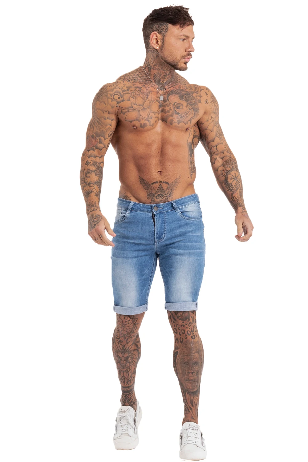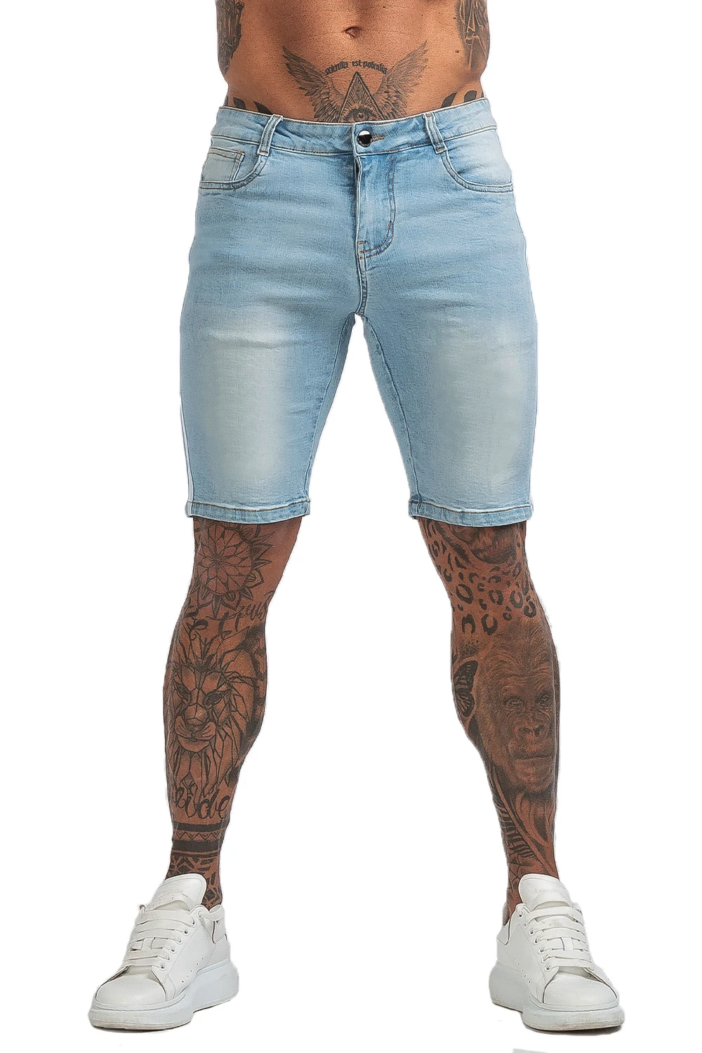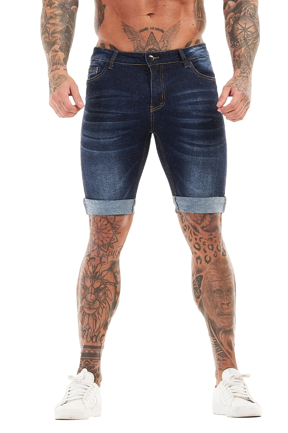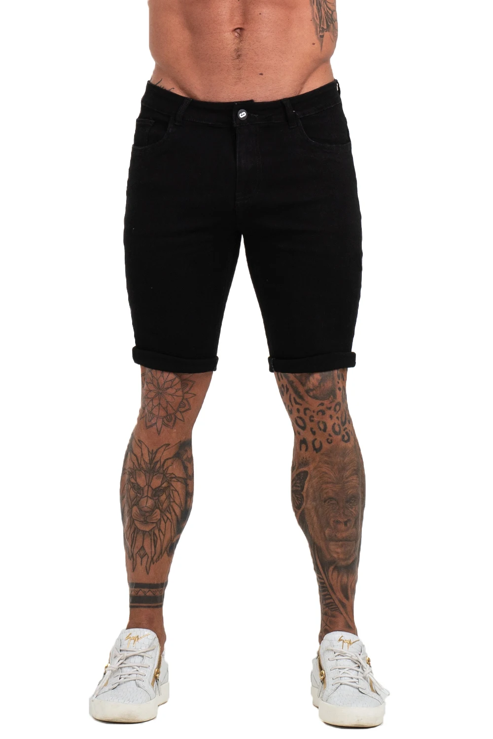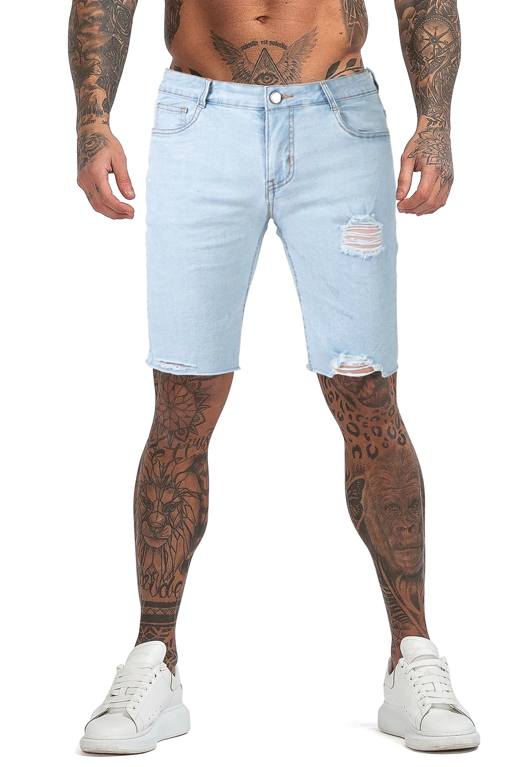 GINGTTO Jeans Mens Denim Shorts Skinny Short Pants Jean Shorts for men Elastic Waist Slim Fit Streetwear Stretch
