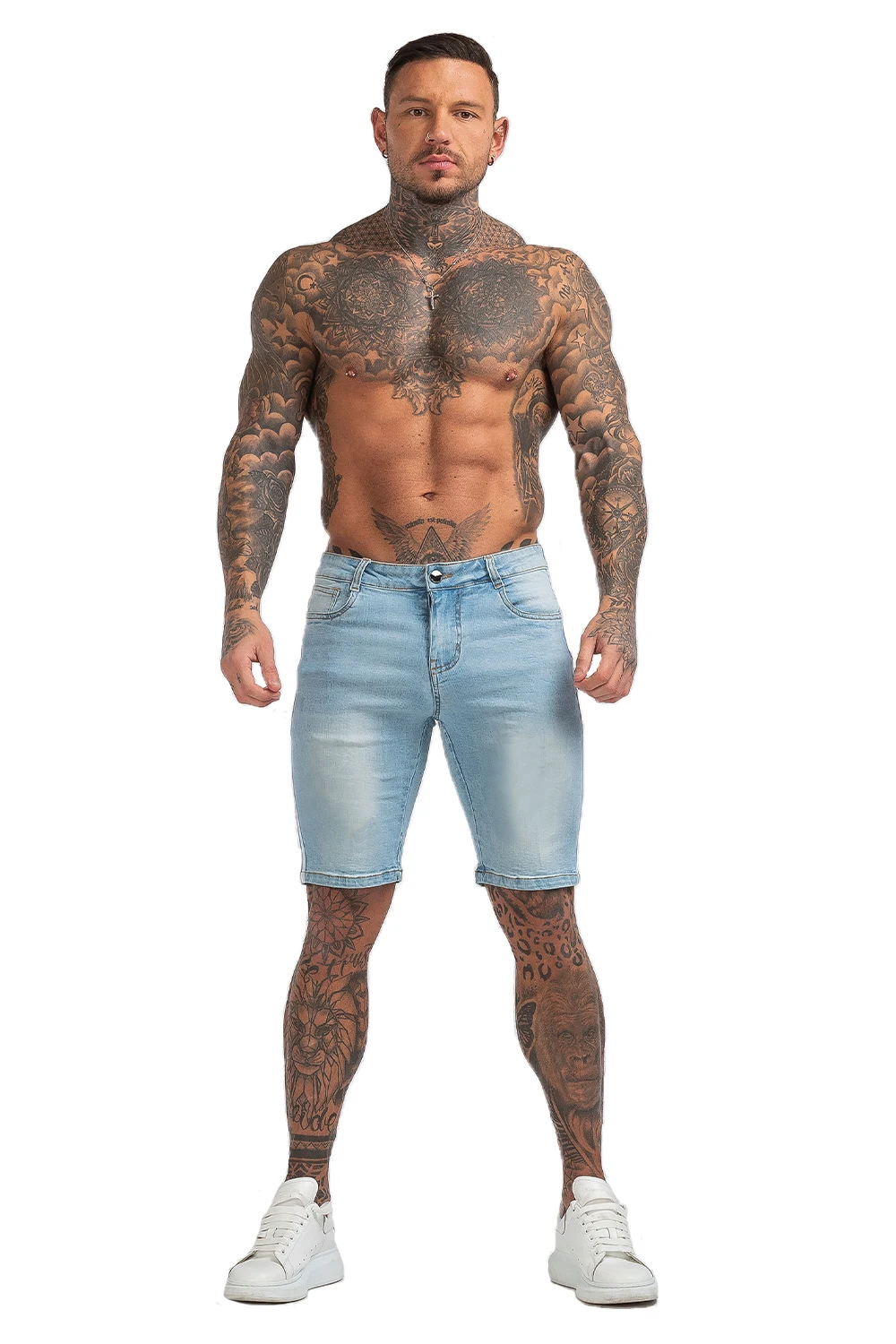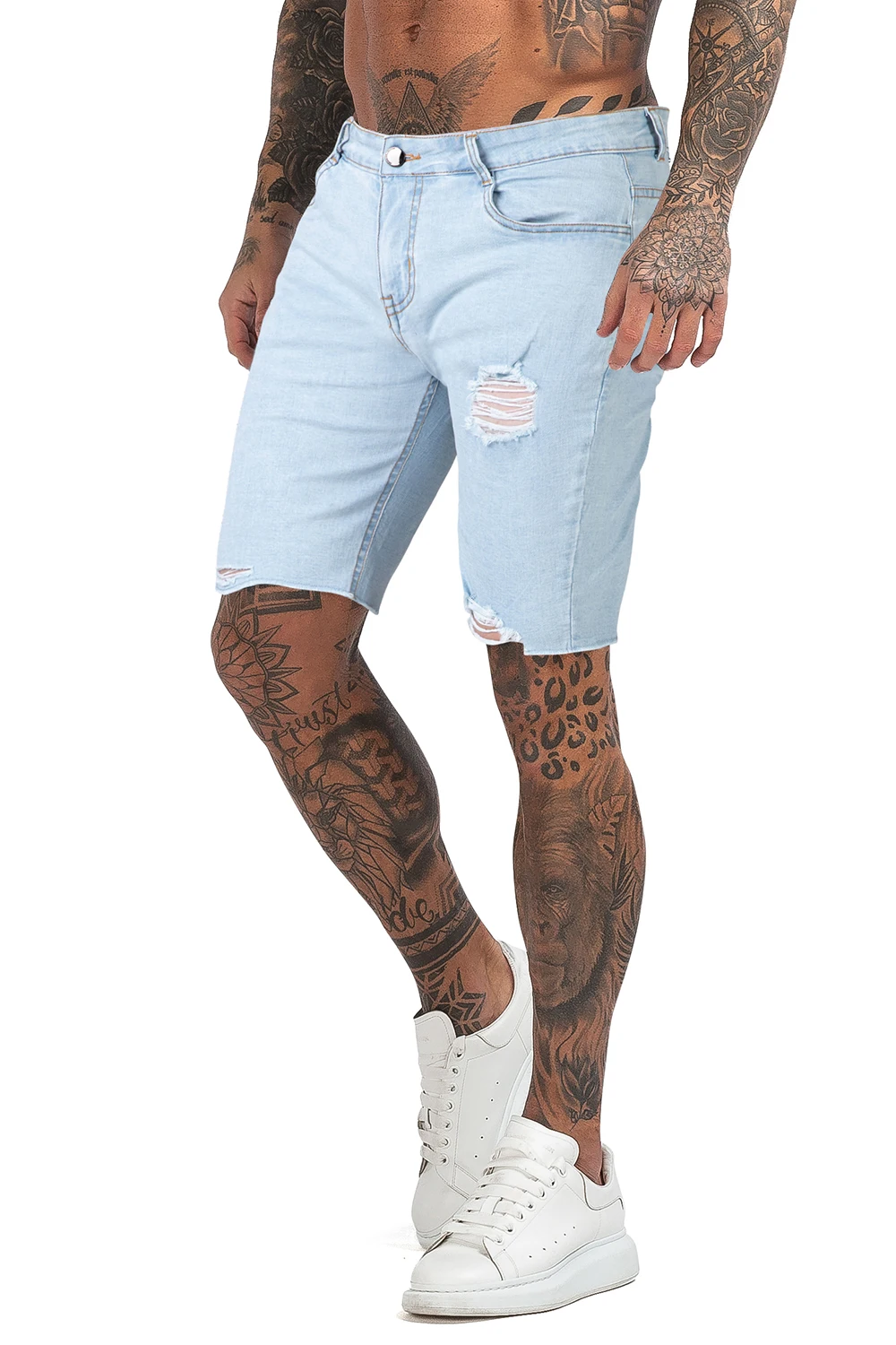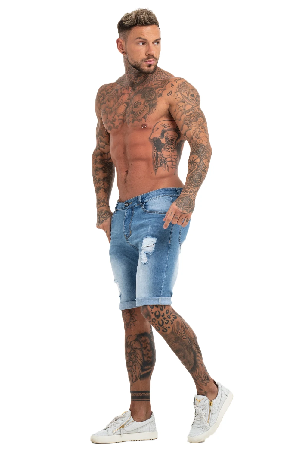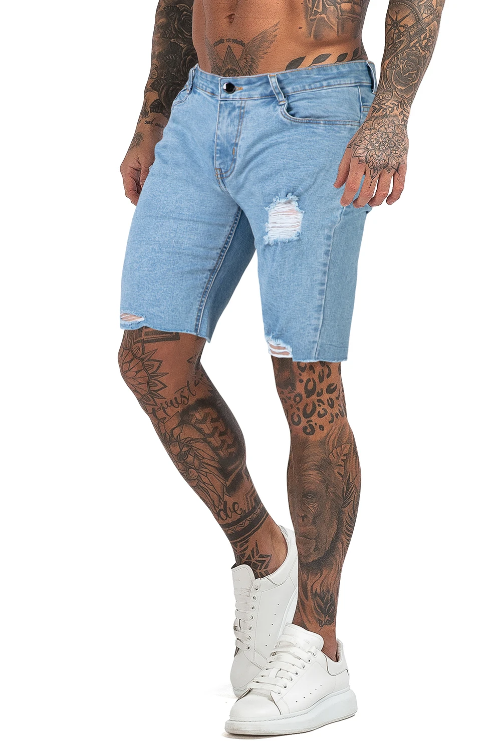 GINGTTO Jeans Mens Denim Shorts Skinny Short Pants Jean Shorts for men Elastic Waist Slim Fit Streetwear Stretch