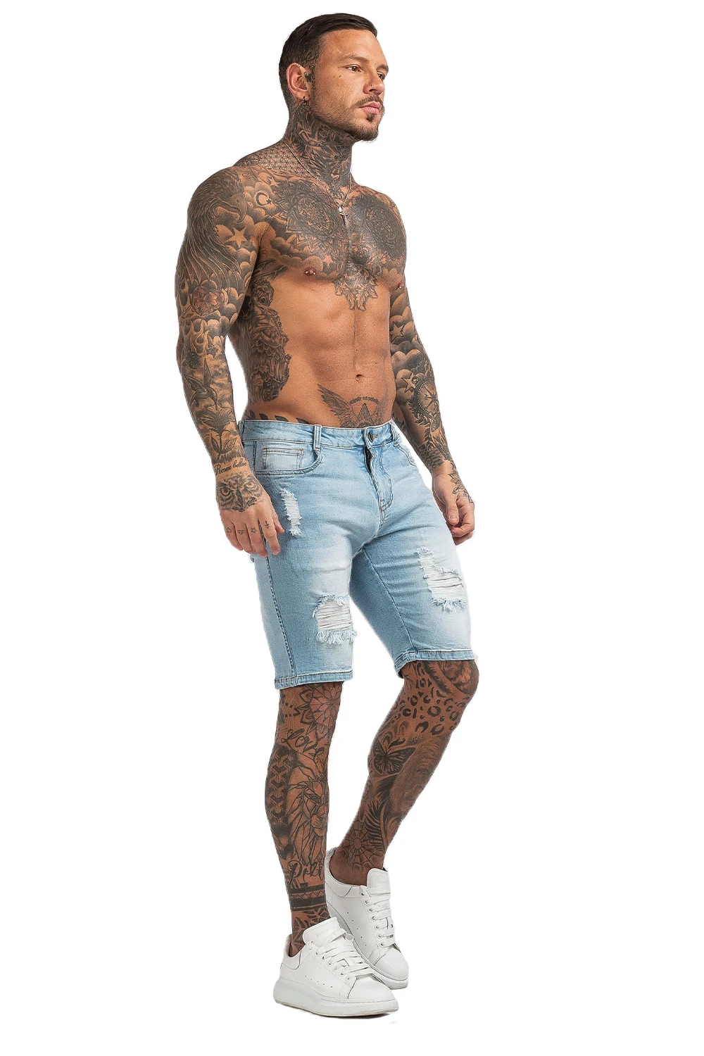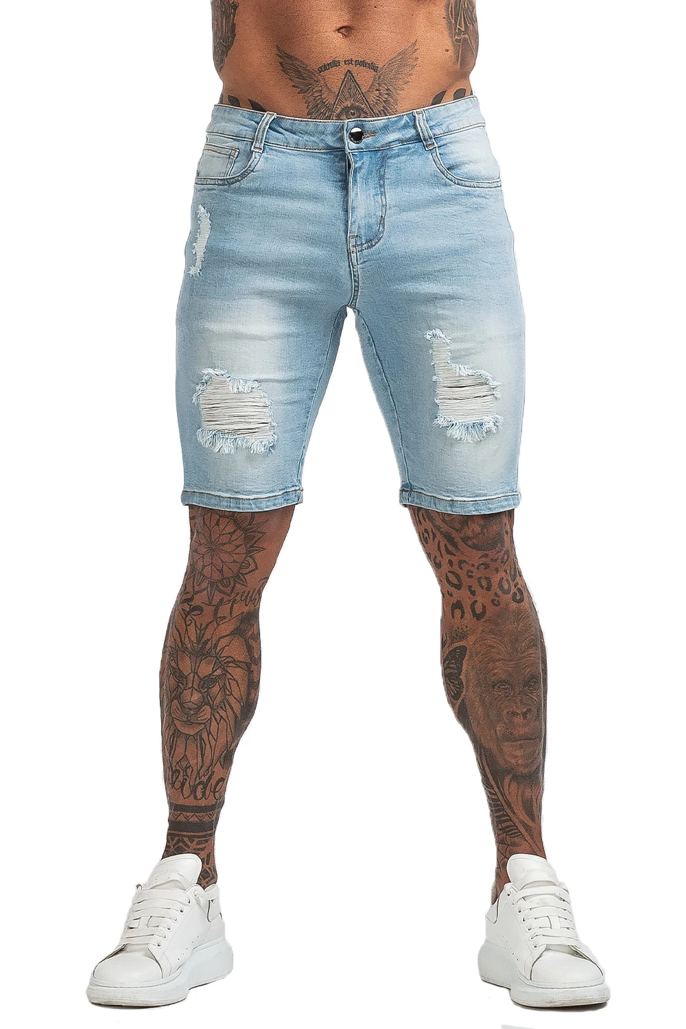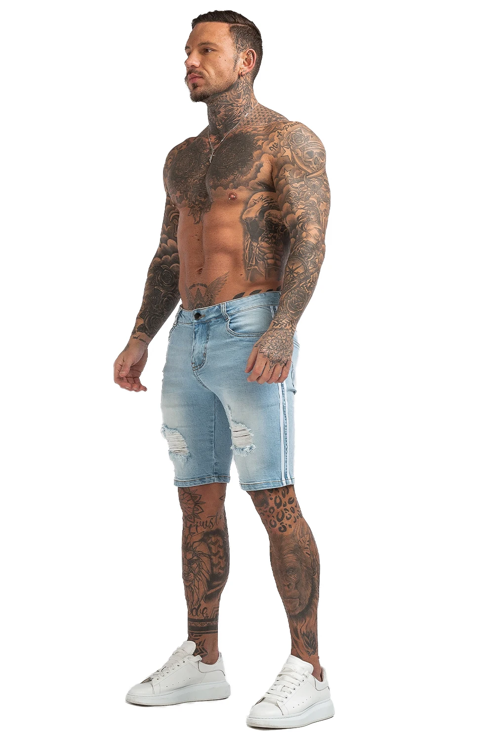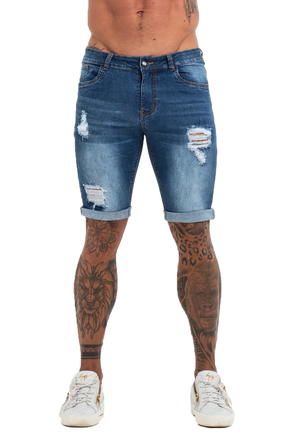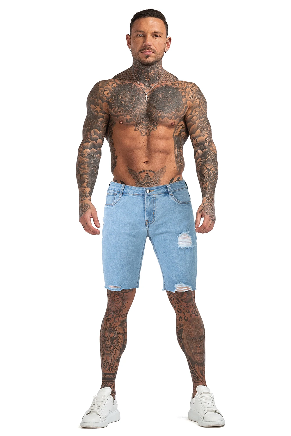 GINGTTO Jeans Mens Denim Shorts Skinny Short Pants Jean Shorts for men Elastic Waist Slim Fit Streetwear Stretch
