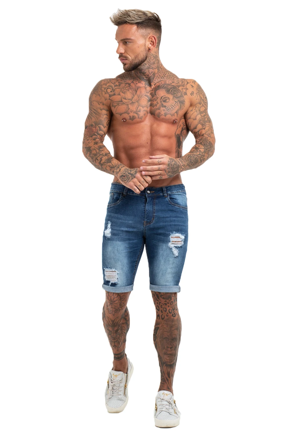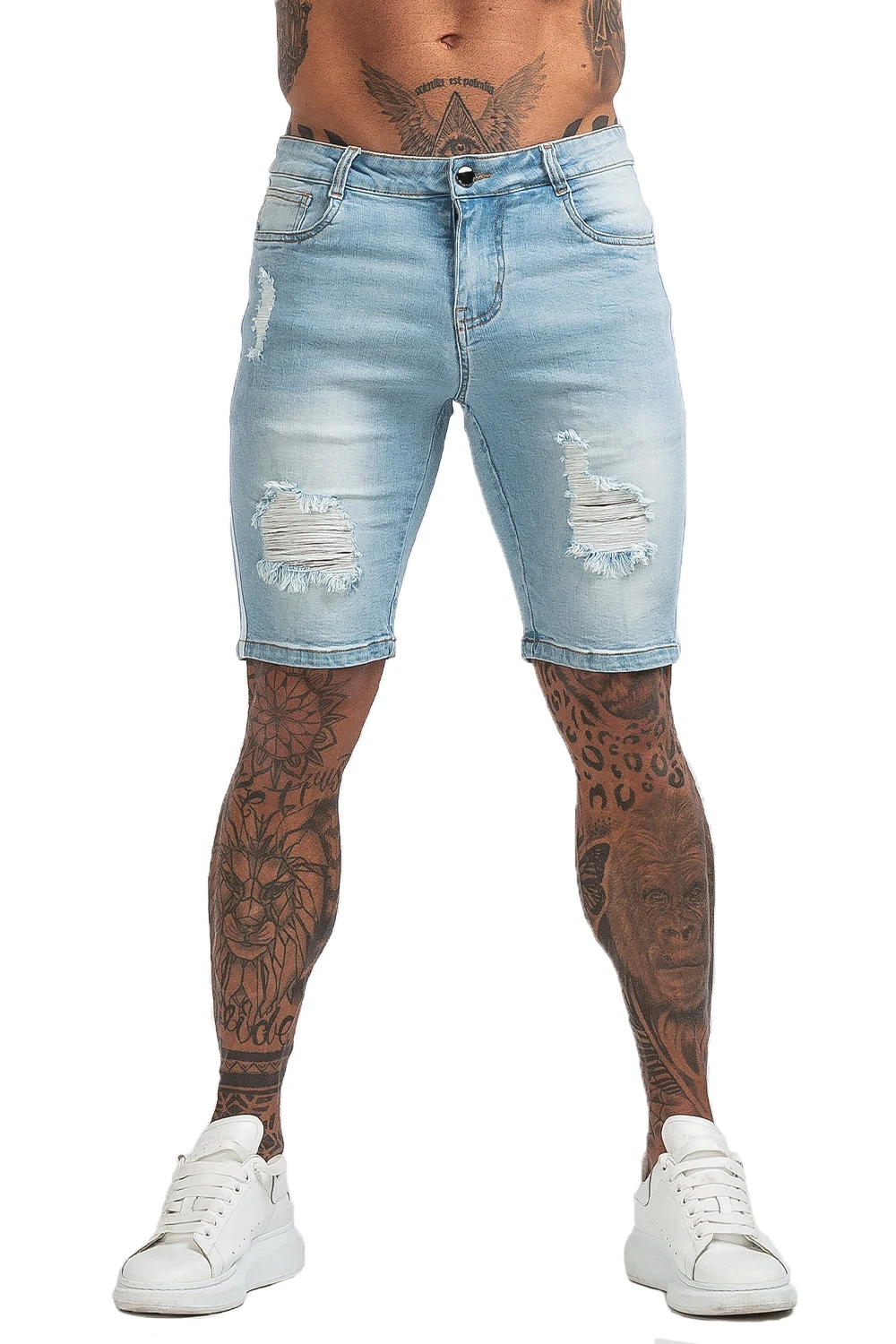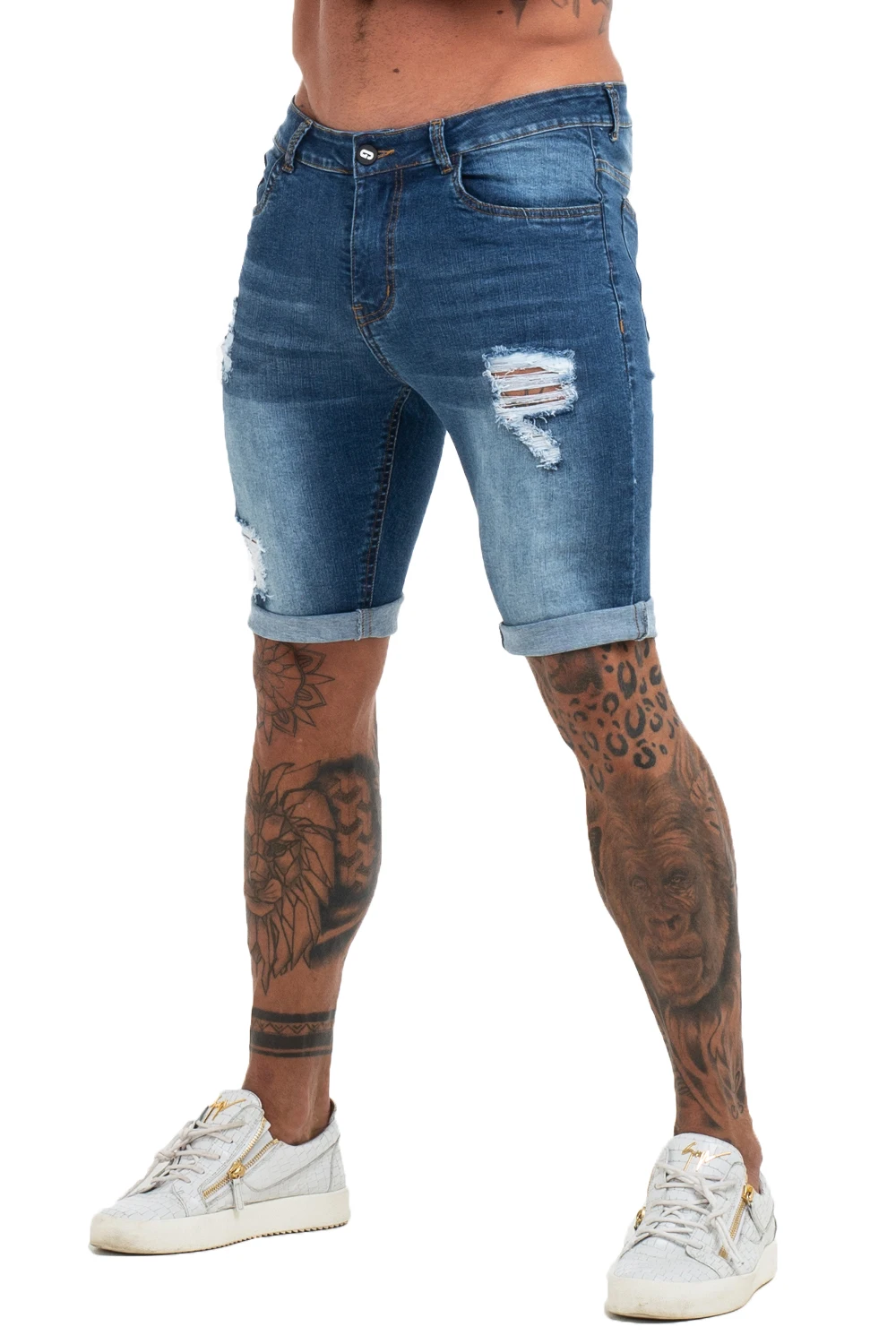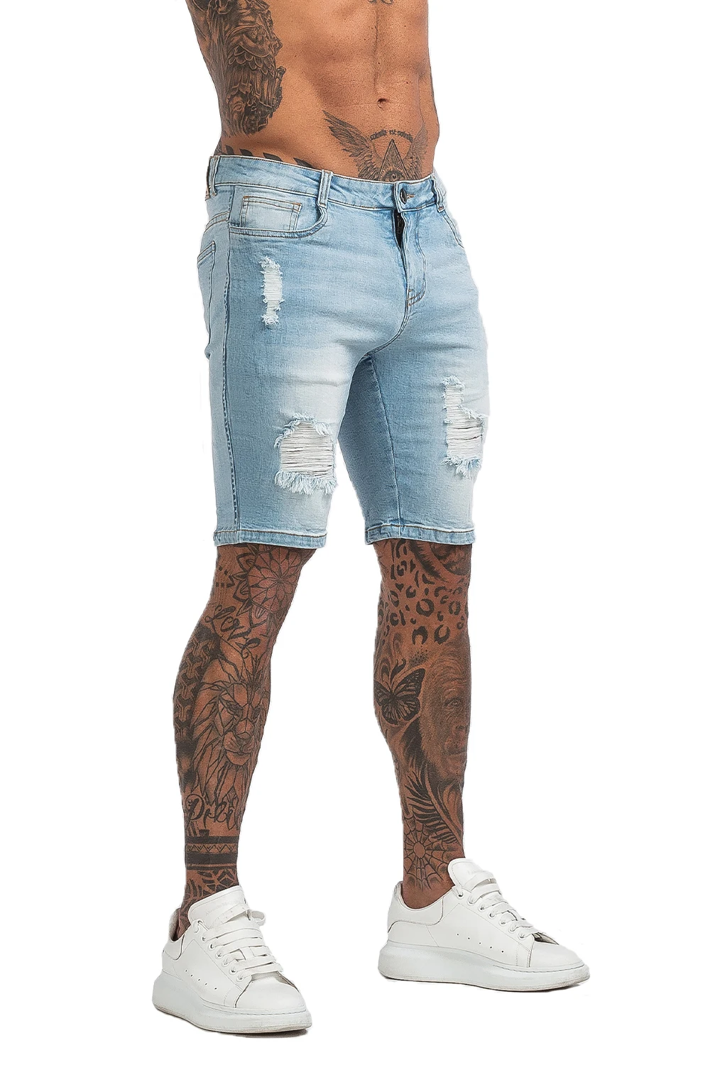 GINGTTO Jeans Mens Denim Shorts Skinny Short Pants Jean Shorts for men Elastic Waist Slim Fit Streetwear Stretch
