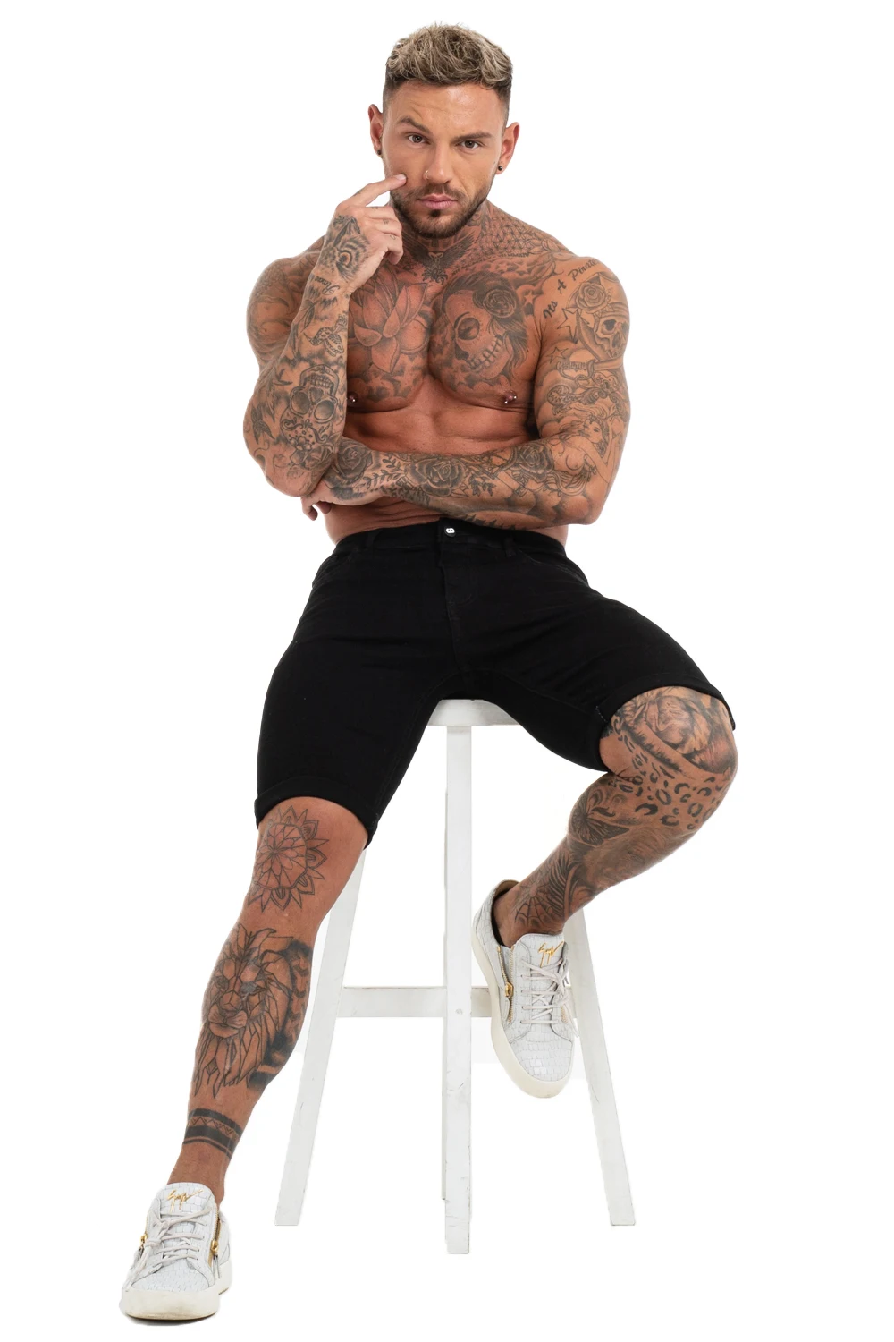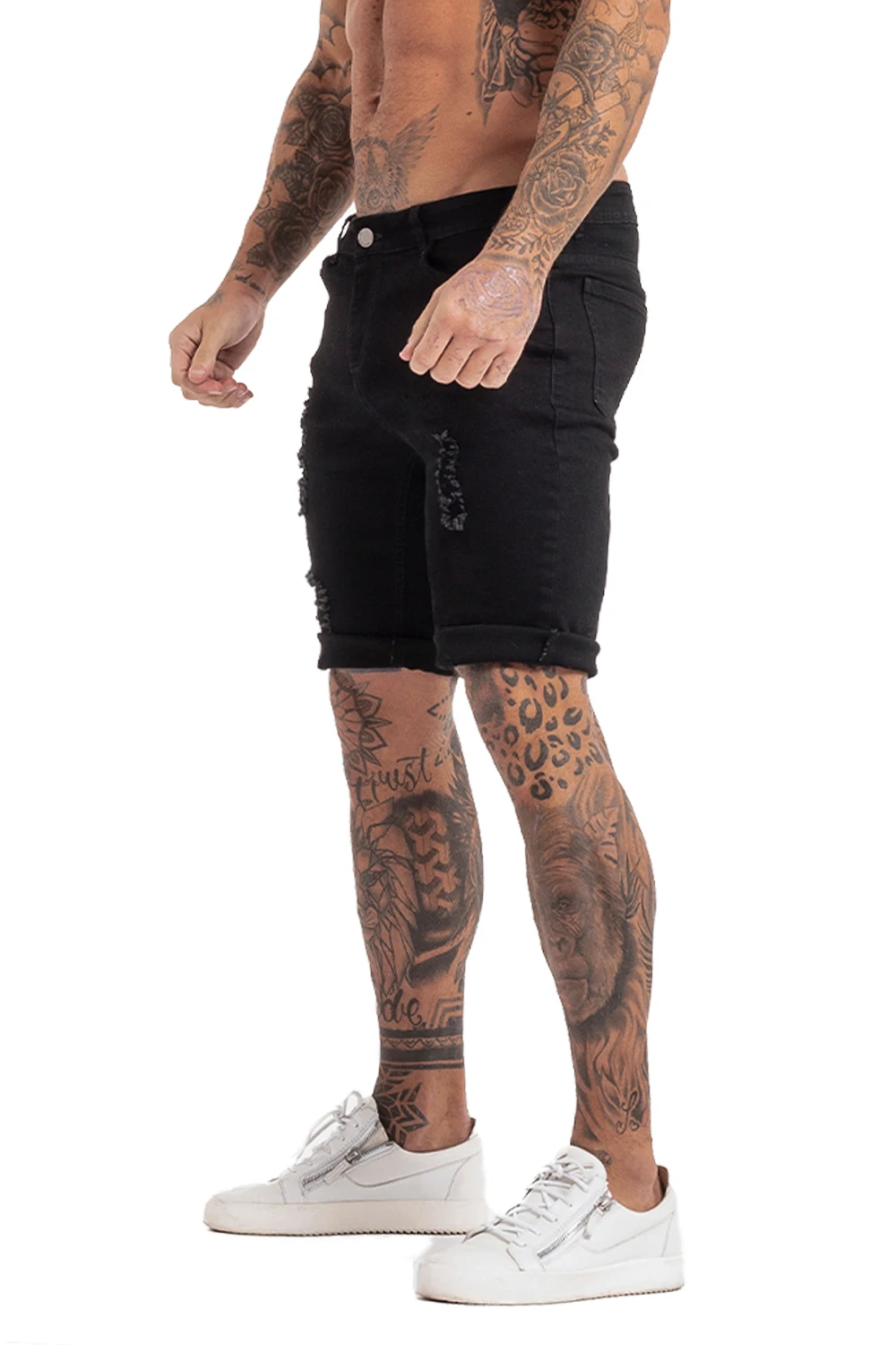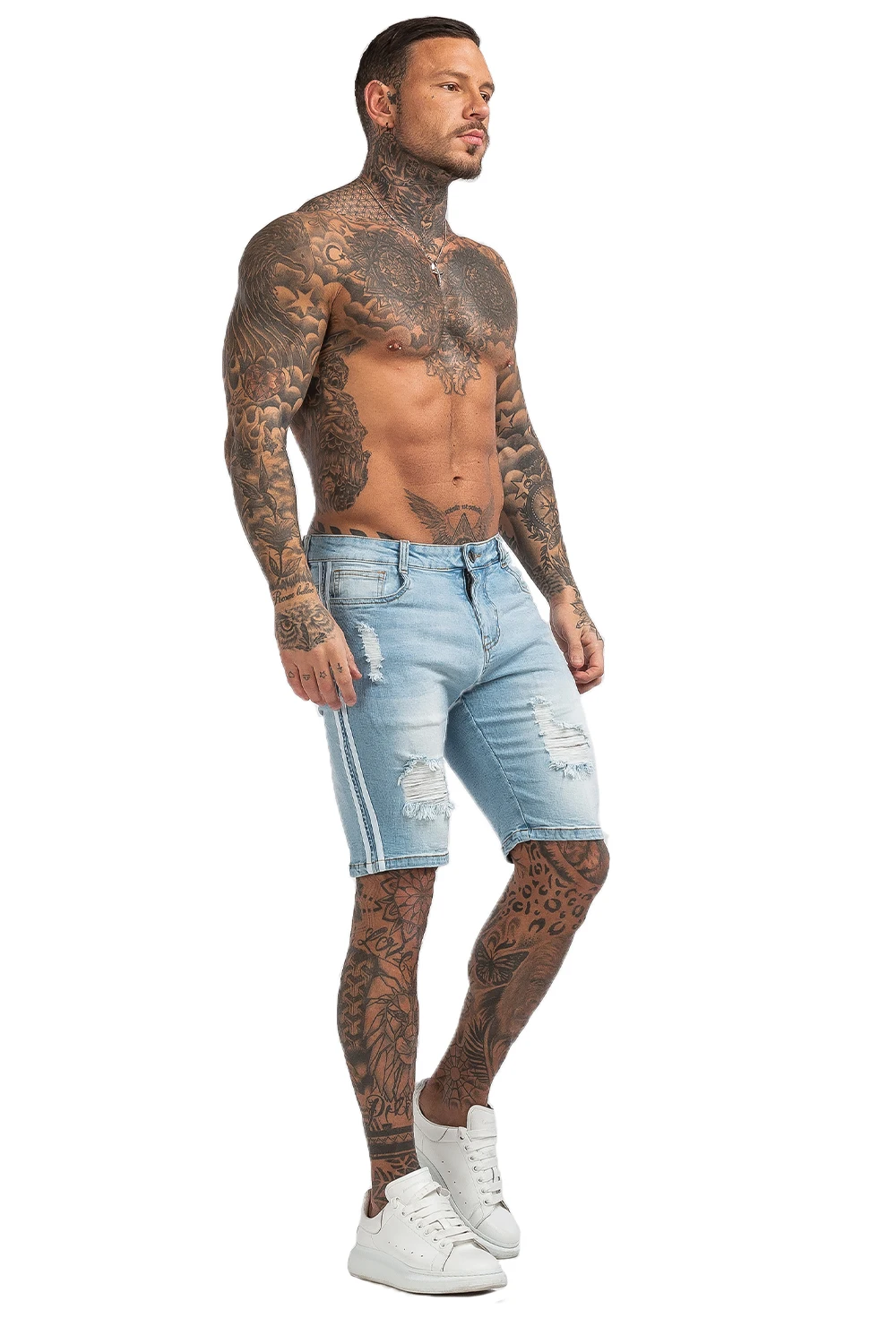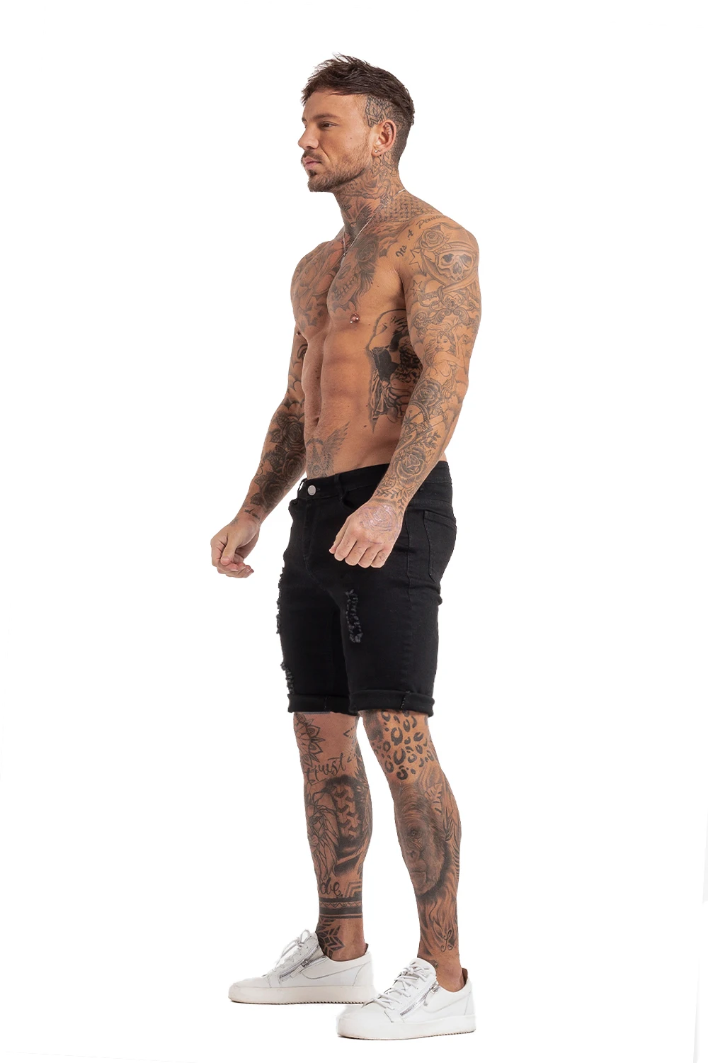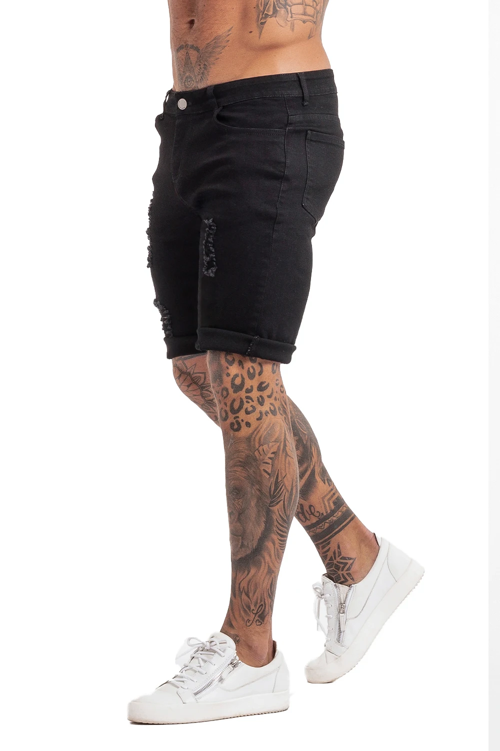 GINGTTO Jeans Mens Denim Shorts Skinny Short Pants Jean Shorts for men Elastic Waist Slim Fit Streetwear Stretch