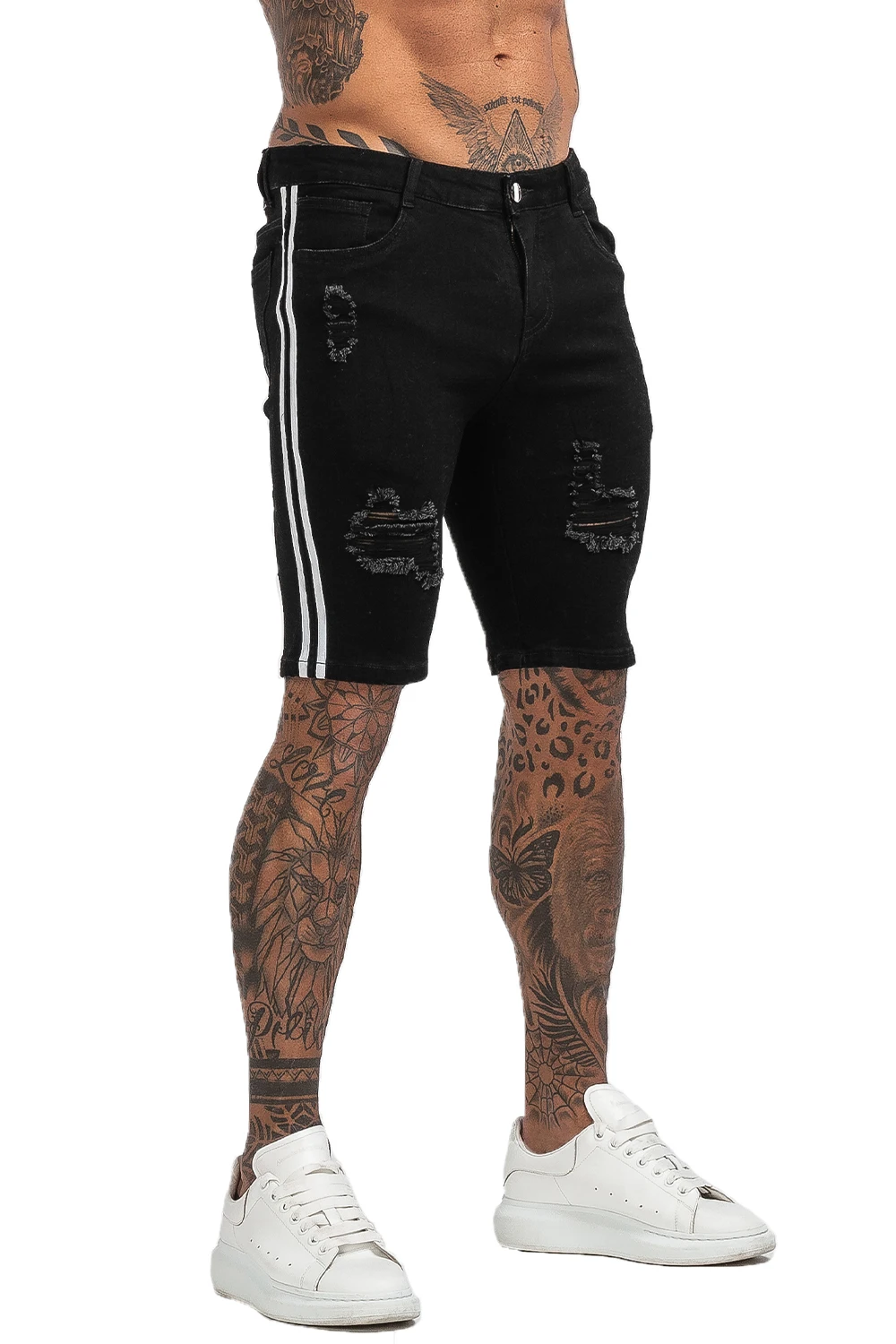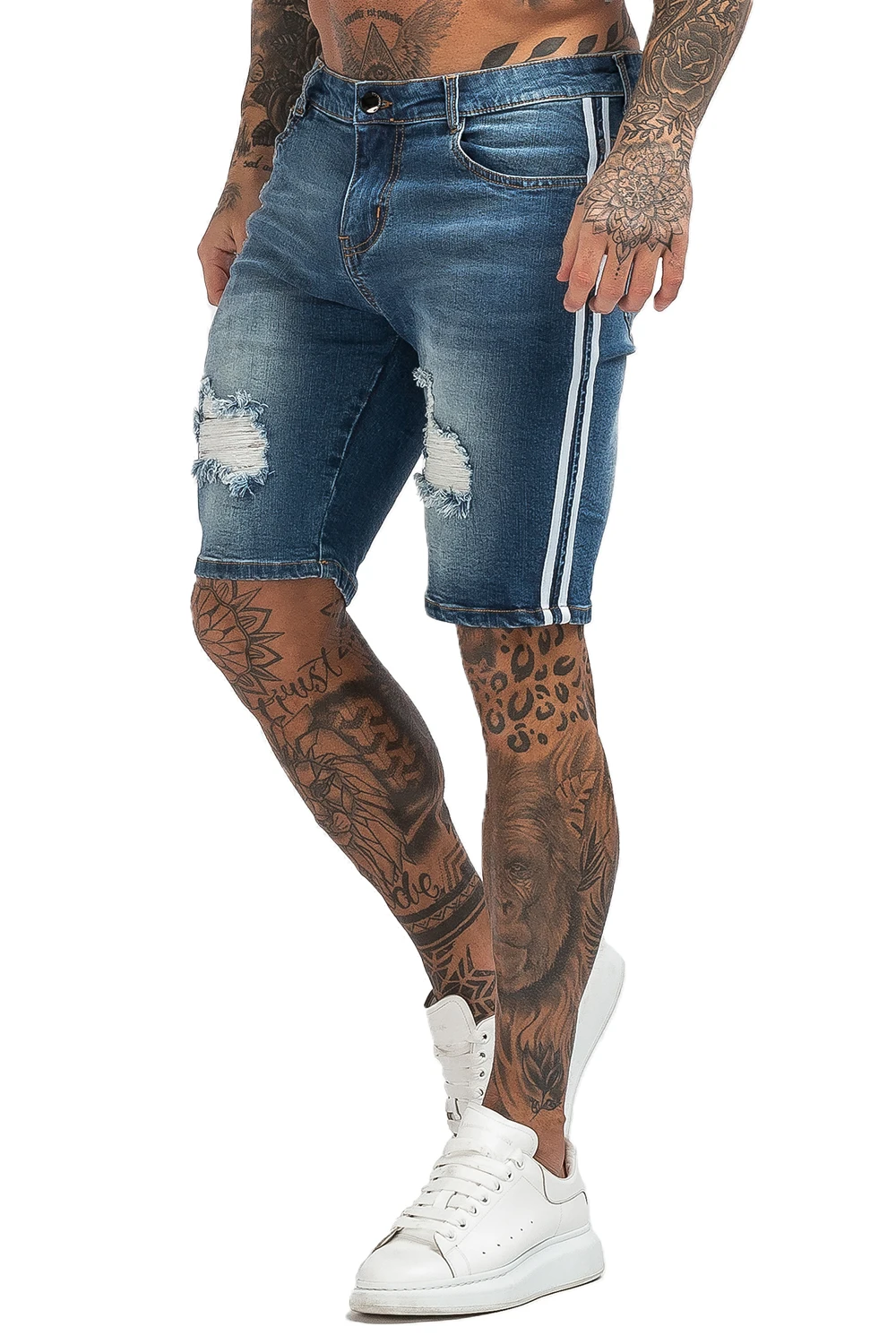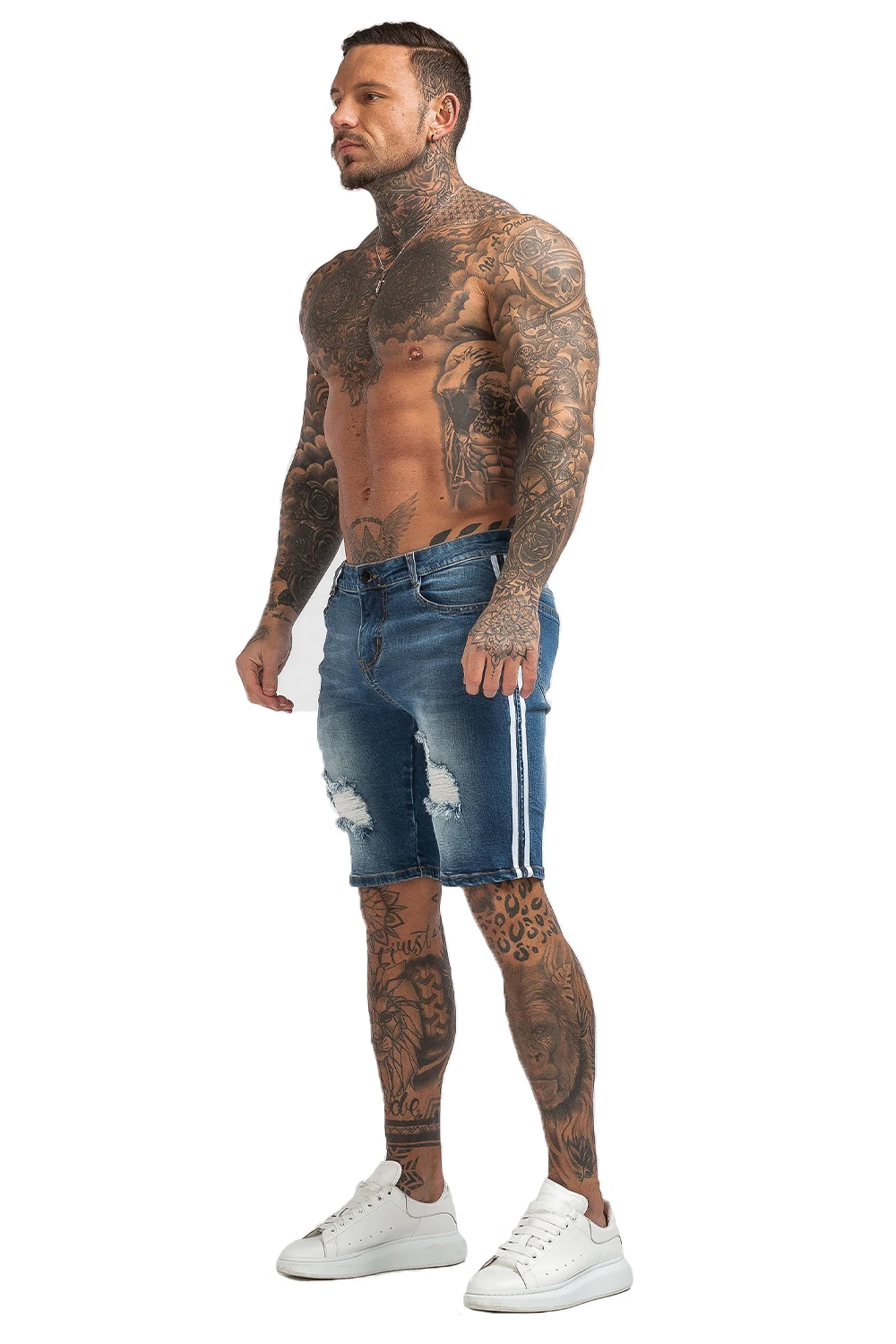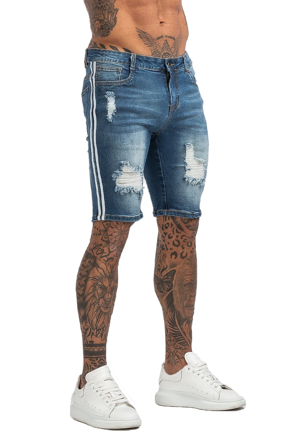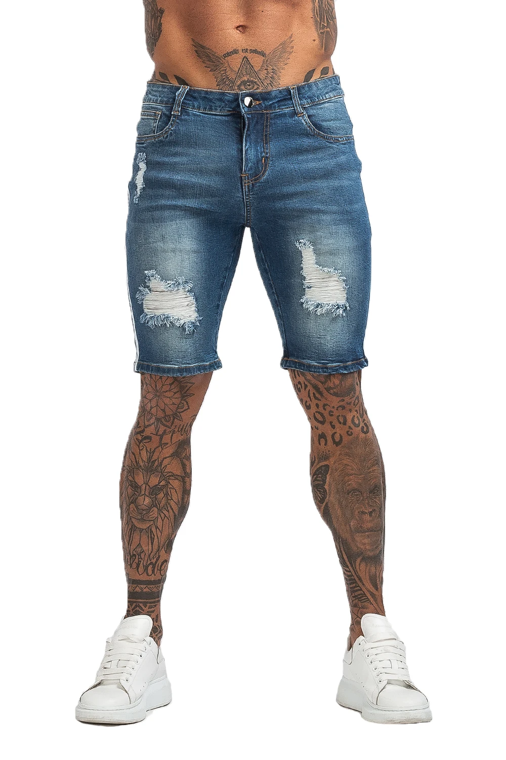 Hipster slim fit denim shorts, fashion ripped short jeans design.