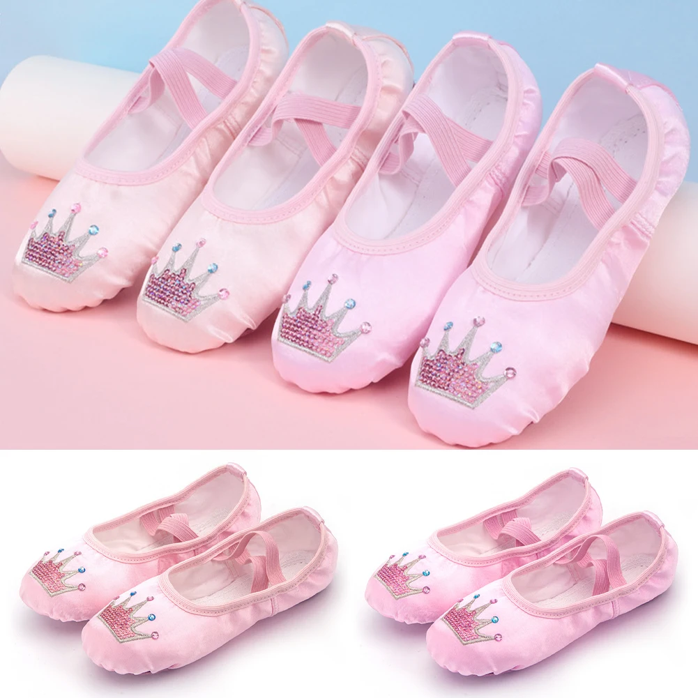 Girls Embroidered Cartoon Crown Ballet Shoes Kids Dance Slippers Professional Soft Sole Girls Female Ballet Yoga Gym Dance Shoes