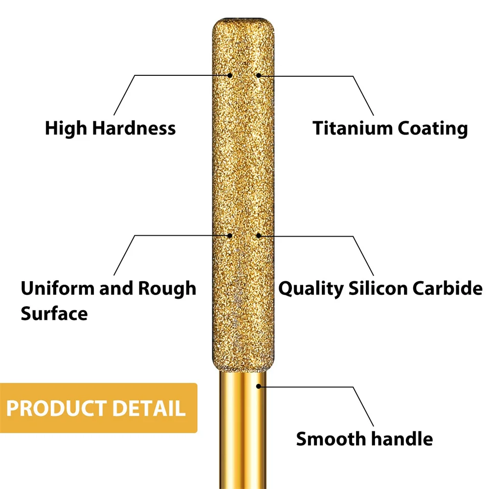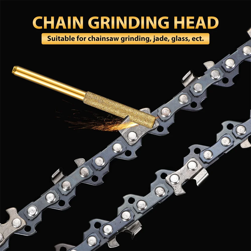 Gold Diamond Coated Cylindrical Burr 4-5.5mm Chainsaw Sharpener Stone File Chain Saw Sharpening Carving Grinding Power Tools Kit