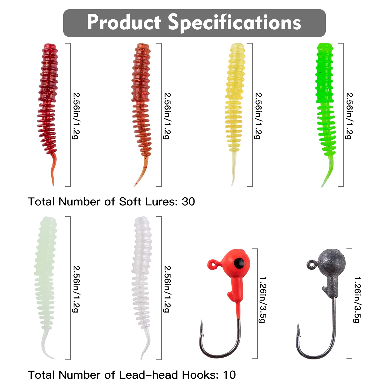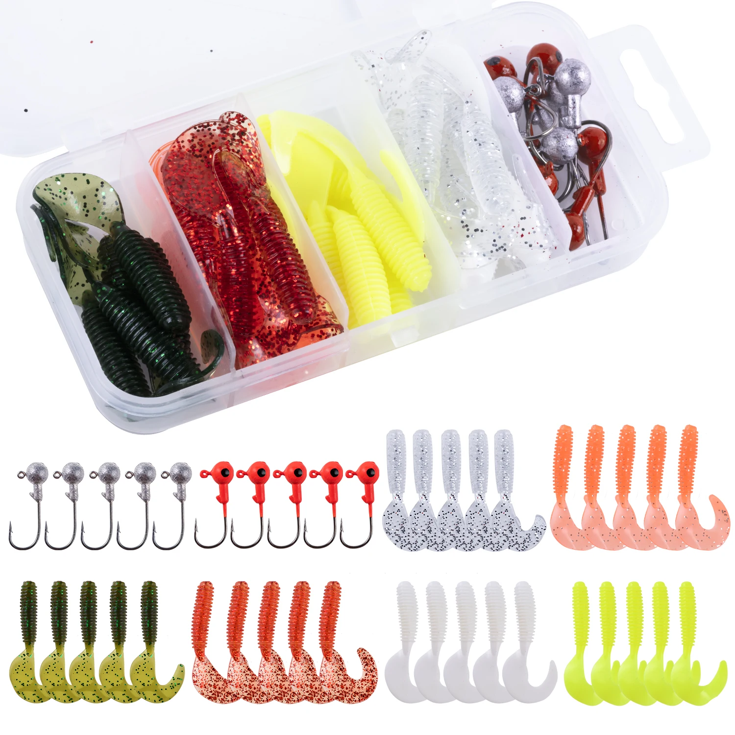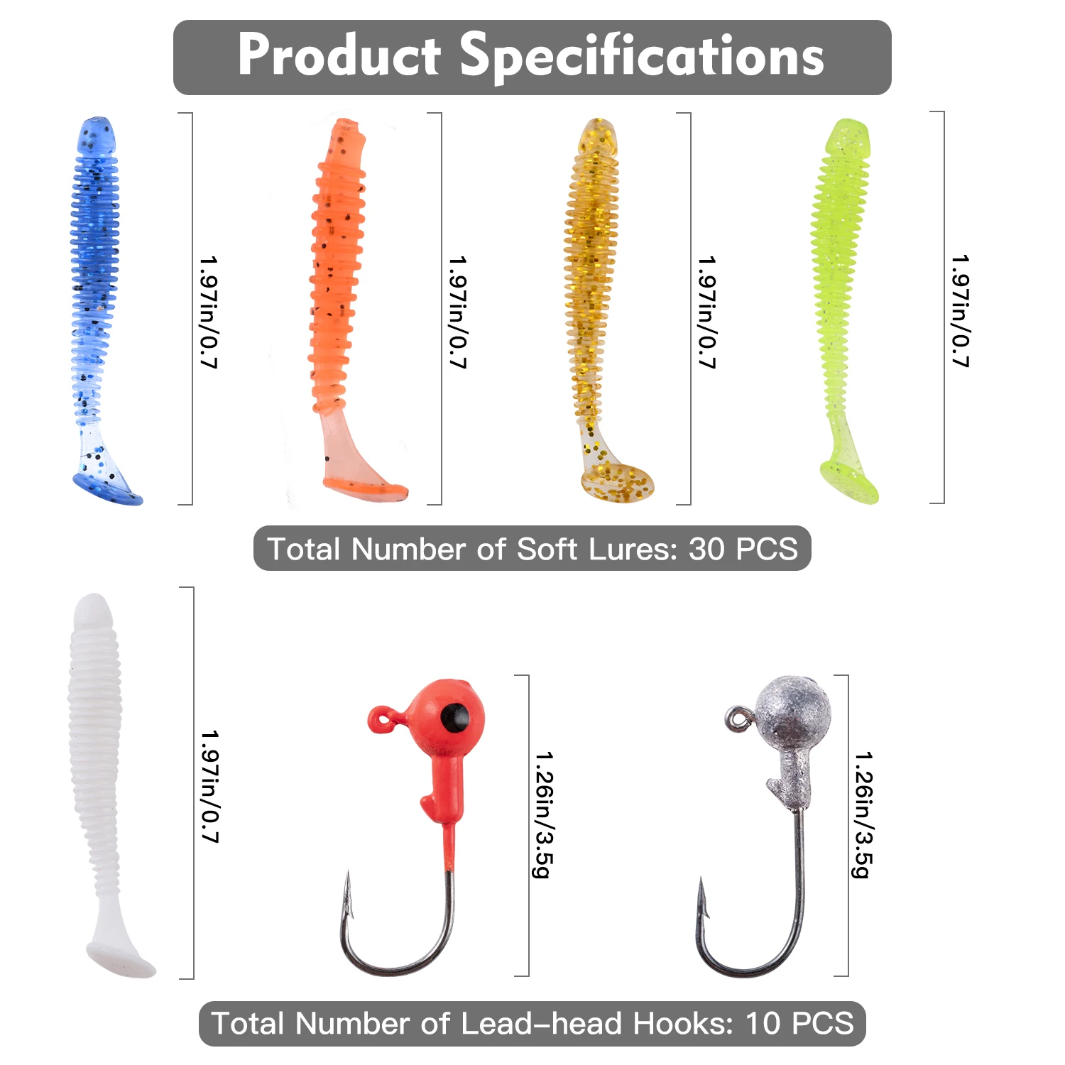 Goture 40pcs/lot Soft Lure Kit Soft Fishing Lure 5cm 0.7g Jig Head Hook 3.2cm 3.5g Fishing Hooks with Fishing Tackle Box Pesca