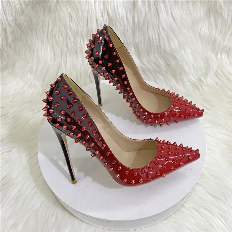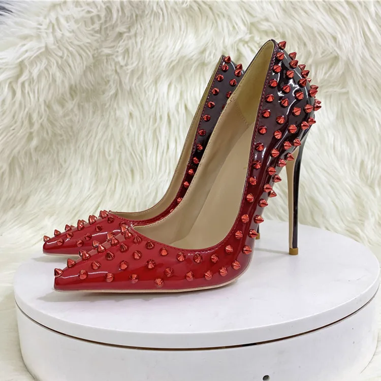 Gradient Color full rivet single shoes OL shallow mouth pointed end pumps wedding party shoes